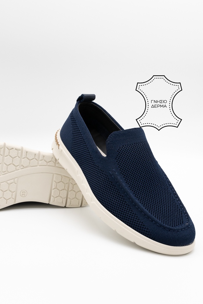 Ανδρικά μοκασίνια με ανάλαφρο ύφασμα που επιτρέπει στο πόδι να αναπνέει. Διαθέτουν μαλακό δερμάτινο πάτο για άνεση όλη τη μέρα. Εύκολα στο φόρεμα, ιδανικά για καθημερινή χρήση ή πιο προσεγμένες εμφανίσεις.