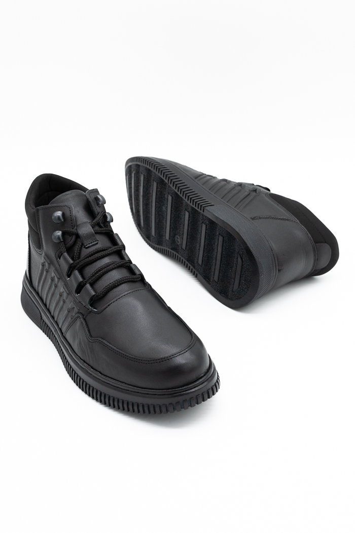 Ανδρικά μποτάκια με σχέδιο στο πλάι κατασκευασμένα από γνήσιο δέρμα με κορδόνια και φερμουάρ από τ. Διαθέτουν επίσης αντιολισθητική κρεπ σόλα για άνετο και σταθερό βάδισμα.