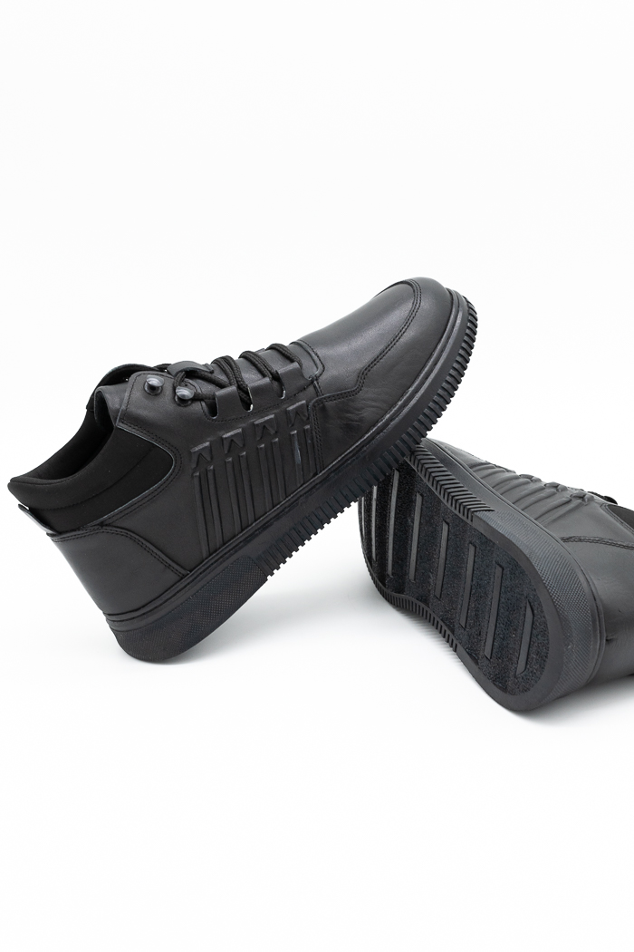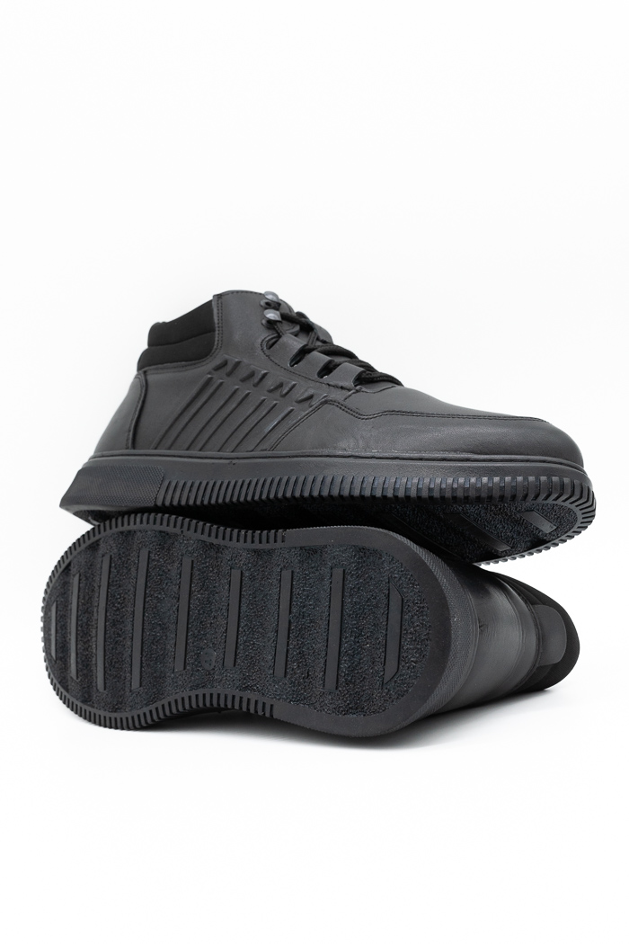 Ανδρικά δερμάτινα μποτάκια με σχέδιο στο πλάι 1237-Μαύρο