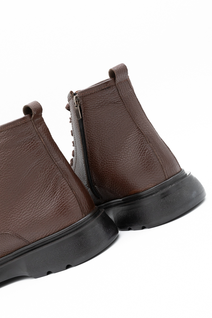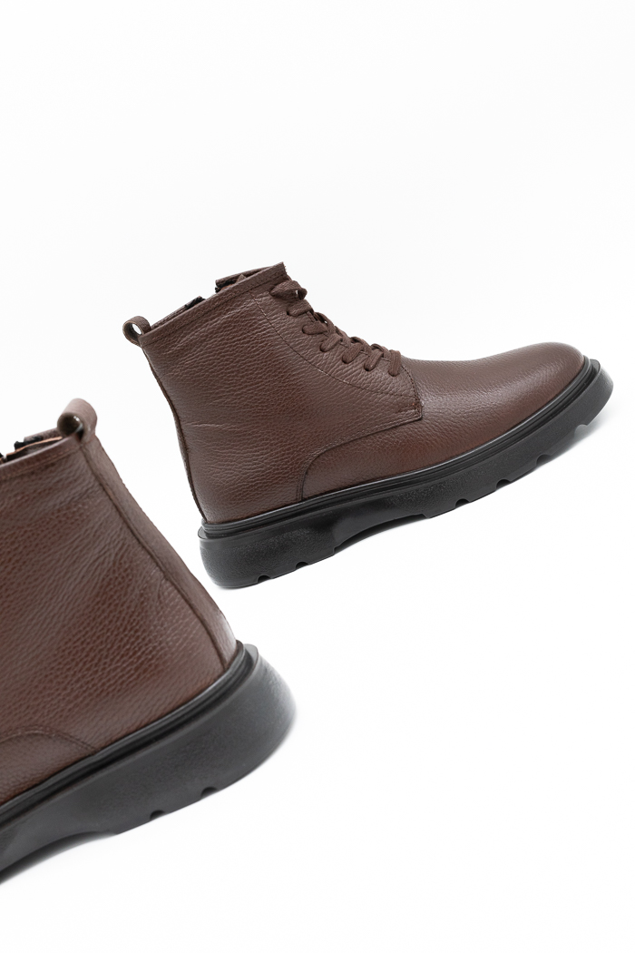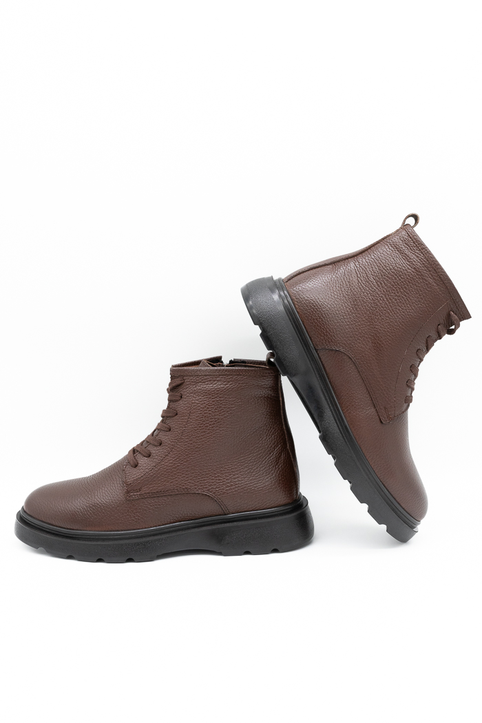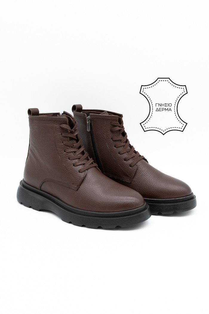Ανδρικά μποτάκια δίπατα κατασκευασμένα από γνήσιο δέρμα με κορδόνια και φερμουάρ από την εσωτερική πλευρά για εύκολη εφαρμογή. Διαθέτουν επίσης  τρακτερωτή αντιολισθητική σόλα για μαλακό βάδισμα.