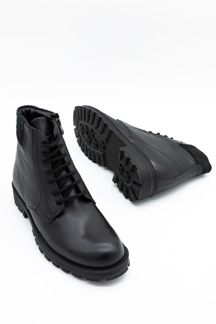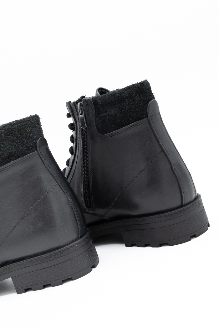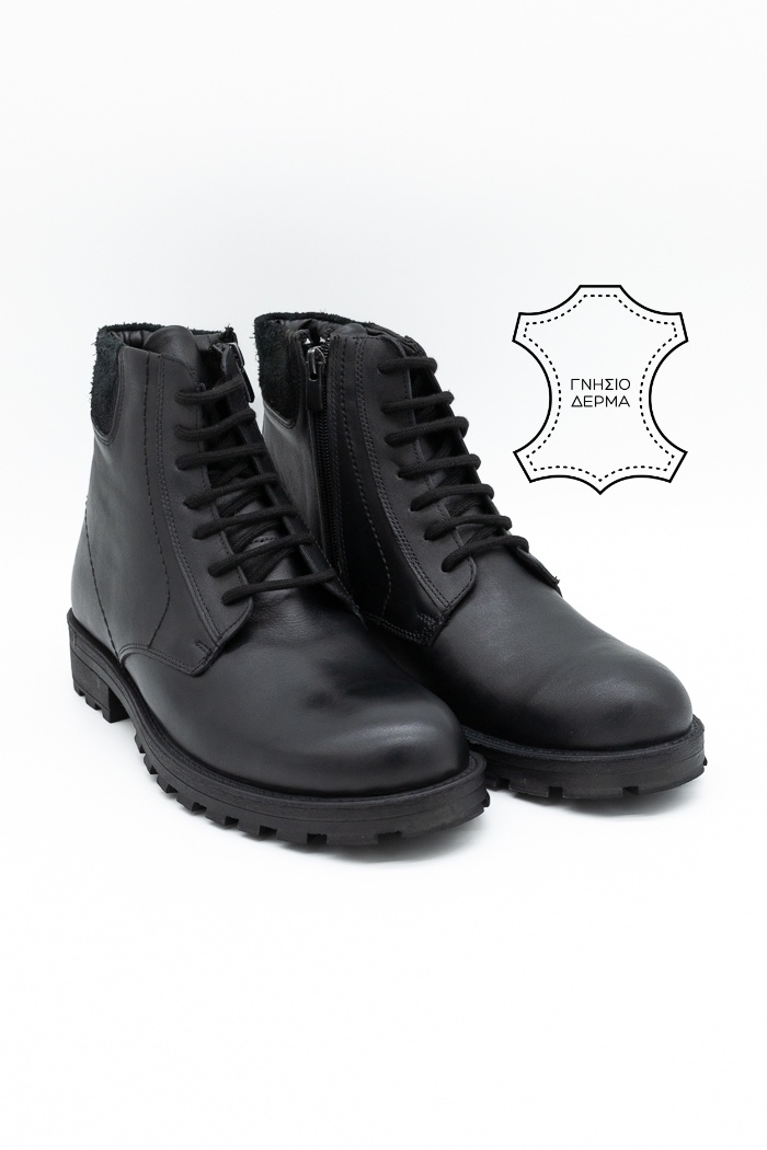 Ανδρικά μποτάκια κατασκευασμένα από γνήσιο δέρμα με κορδόνια και φερμουάρ από την εσωτερική πλευρά για εύκολη εφαρμογή. Διαθέτουν επίσης  τρακτερωτή αντιολισθητική σόλα για μαλακό βάδισμα.