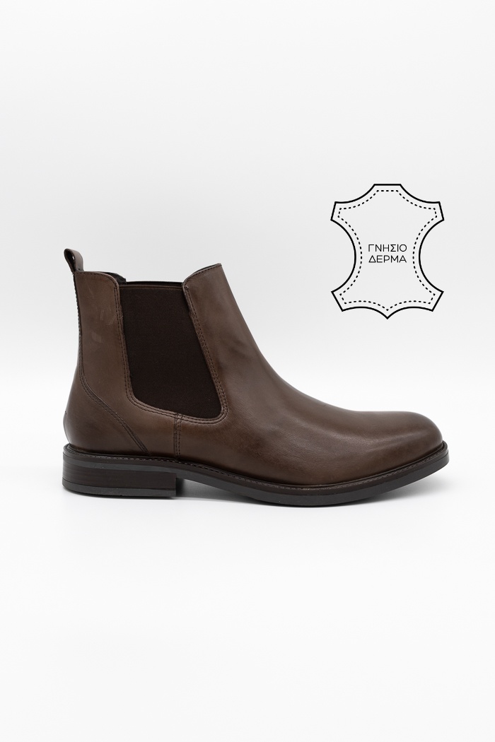 Ανδρικά δερμάτινα chelsea μποτάκια με λάστιχο 65H04-Καφέ