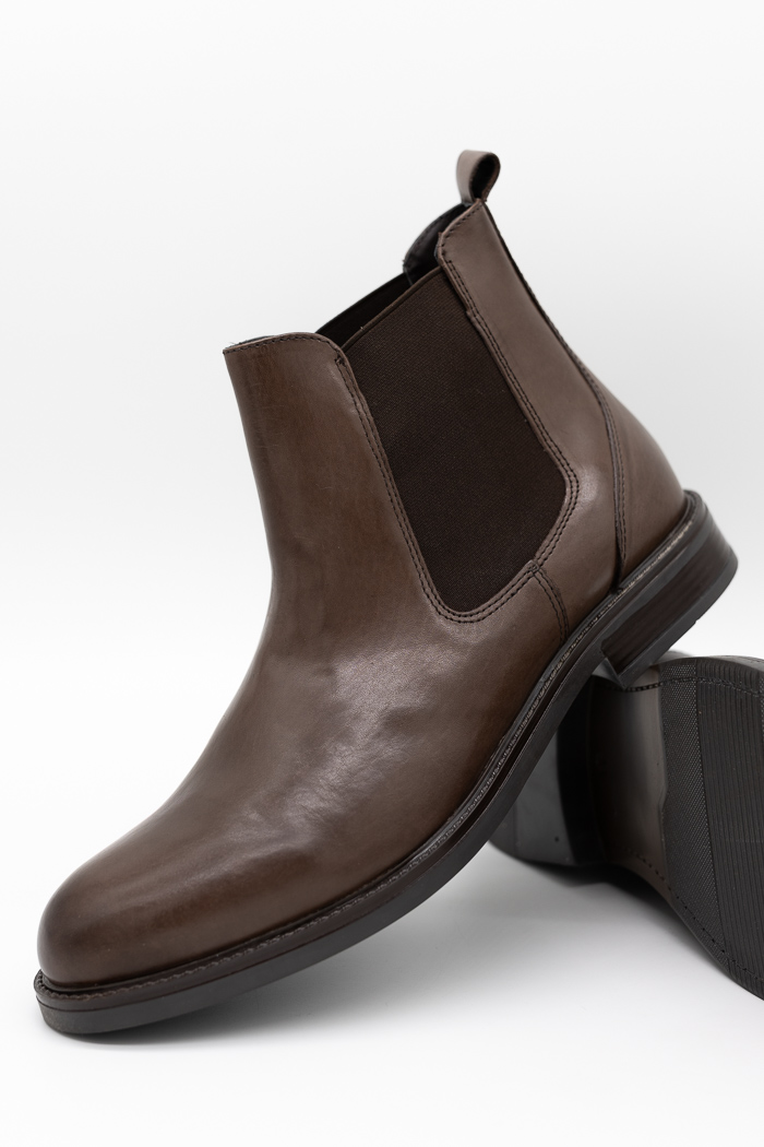 Ανδρικά δερμάτινα chelsea μποτάκια με λάστιχο για εύκολη εφαρμογή και κομψό στυλ. Κατασκευασμένα από γνήσιο δέρμα μέσα και έξω για μέγιστη άνεση και ανθεκτικότητα. Ιδανικά για κάθε εμφάνιση, από πρωί μέχρι βράδυ.