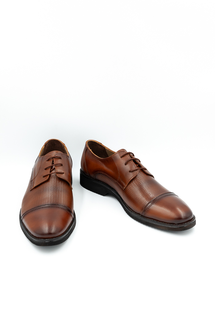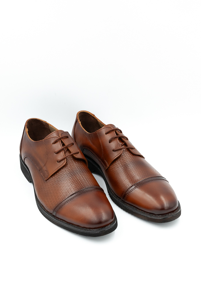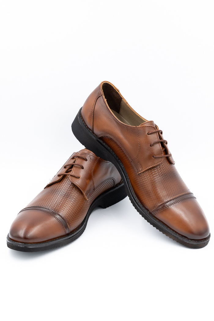 Ανδρικά δερμάτινα δετά παπούτσια με εξωτερικές ραφές 1091-Ταμπά
