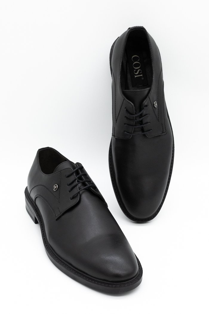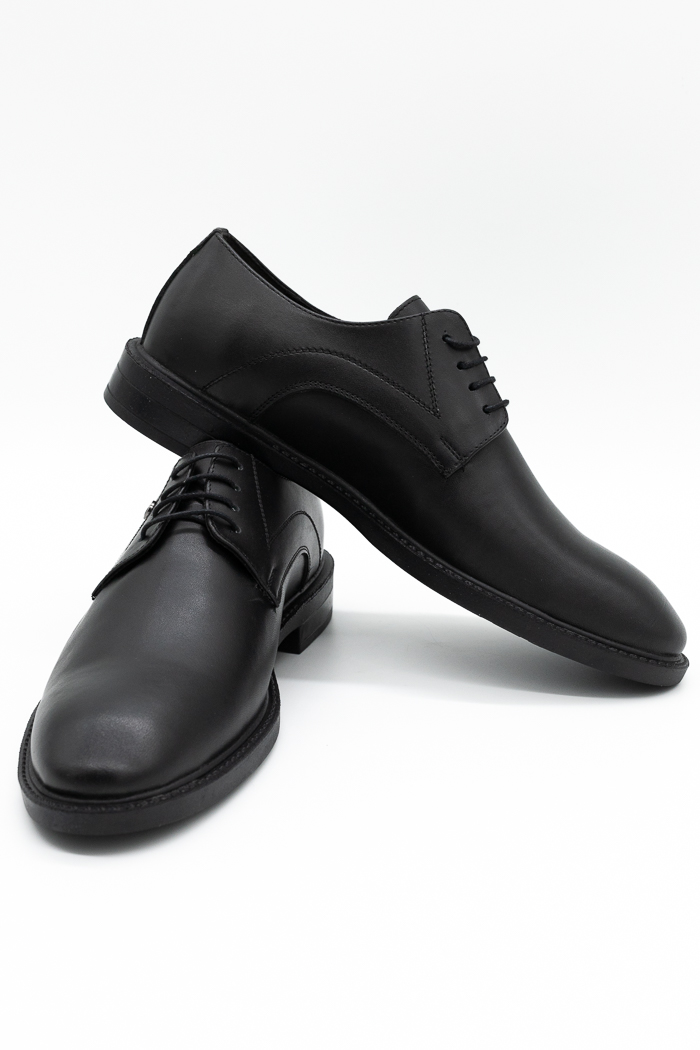 Ανδρικά δερμάτινα Σκαρπίνια με κορδόνια-Μαύρο