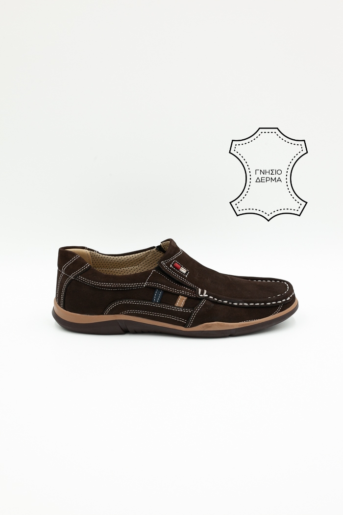 Ανδρικά δερμάτινα σουέτ μοκασίνια K-6 Καφέ