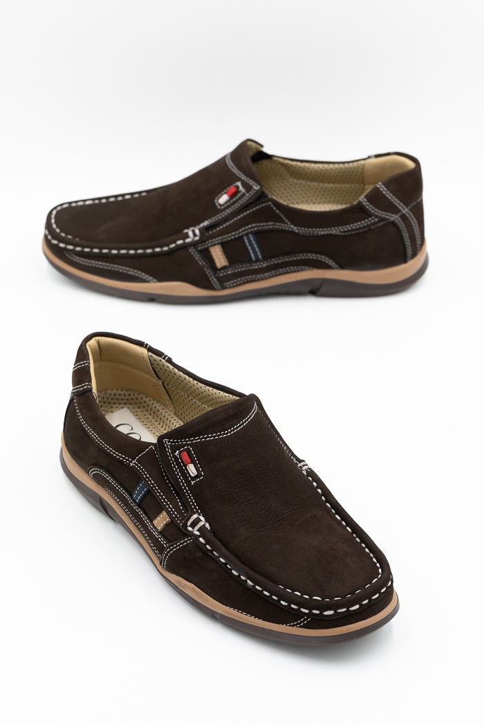 • Ανδρικά δερμάτινα σουέτ μοκασίνια K-6 Καφέ