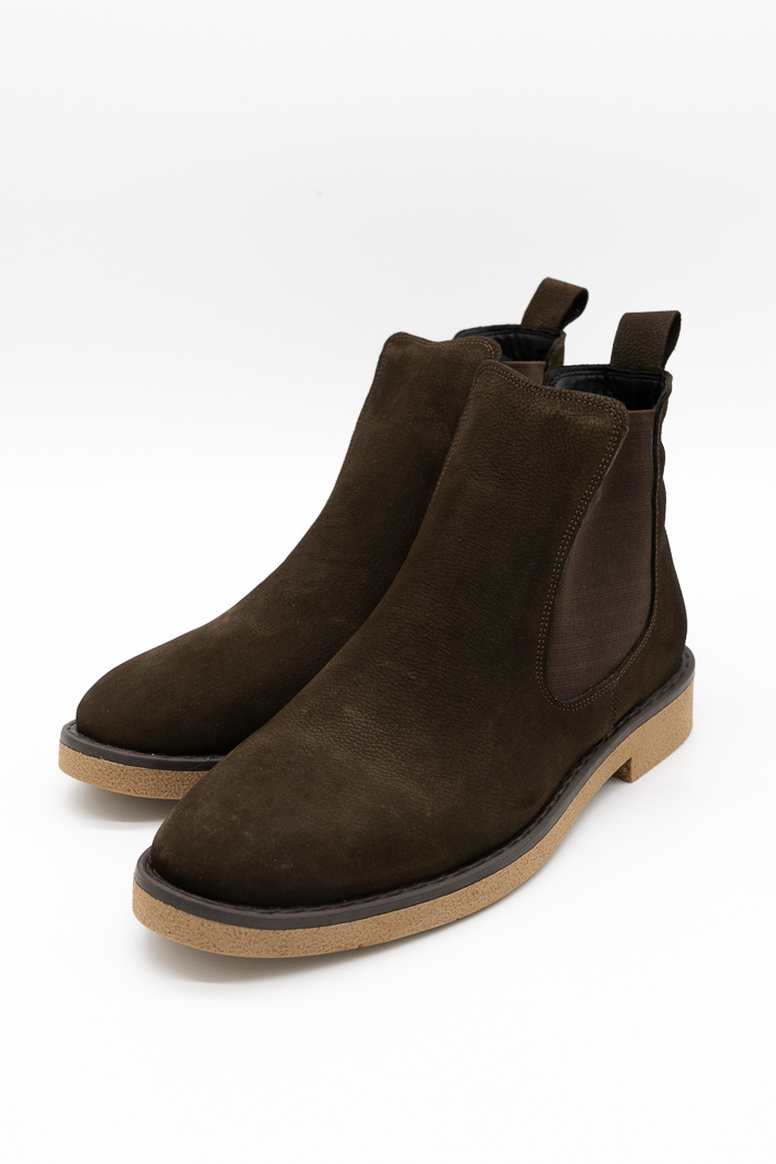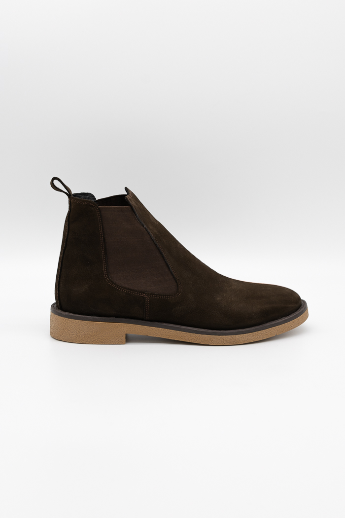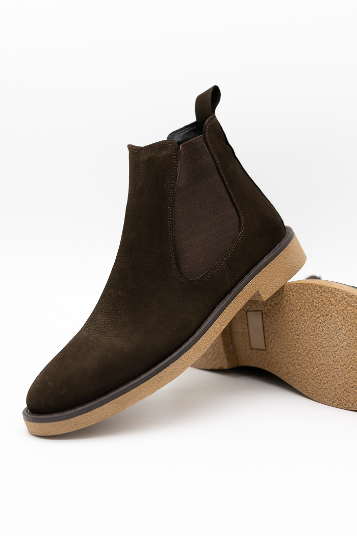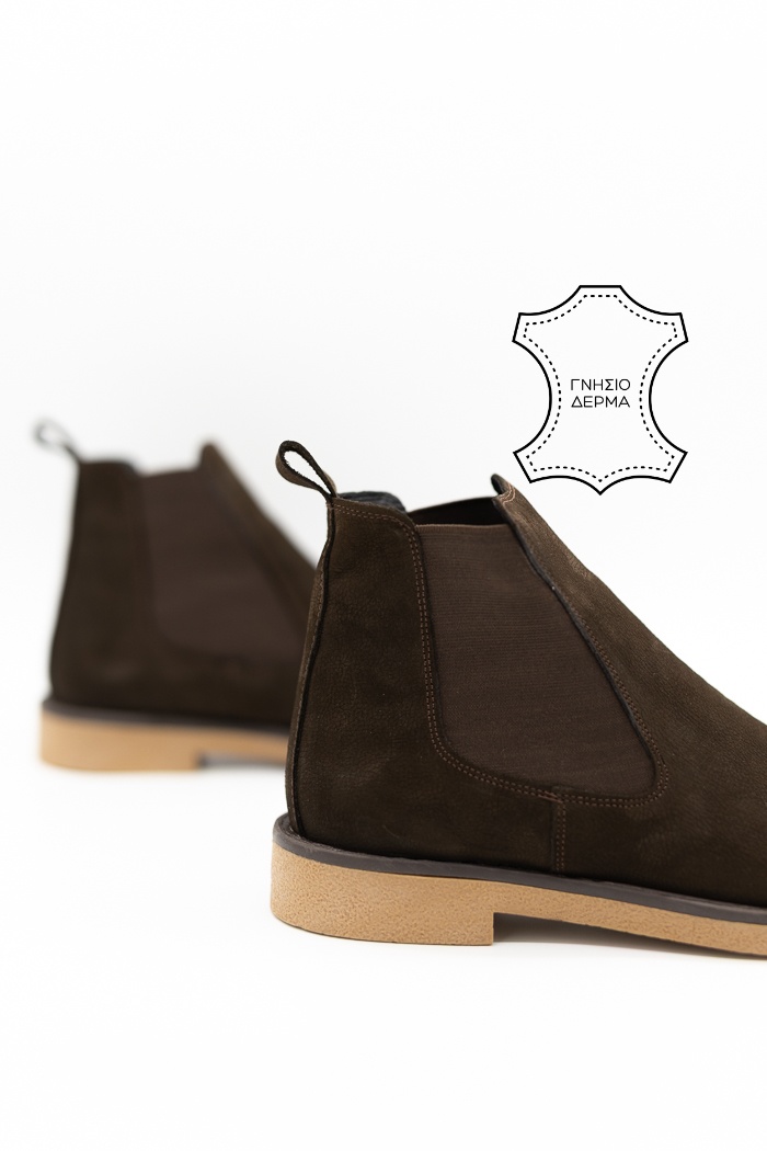 Ανδρικά δερμάτινα suede μποτάκια με λάστιχο 3048W-Καφέ