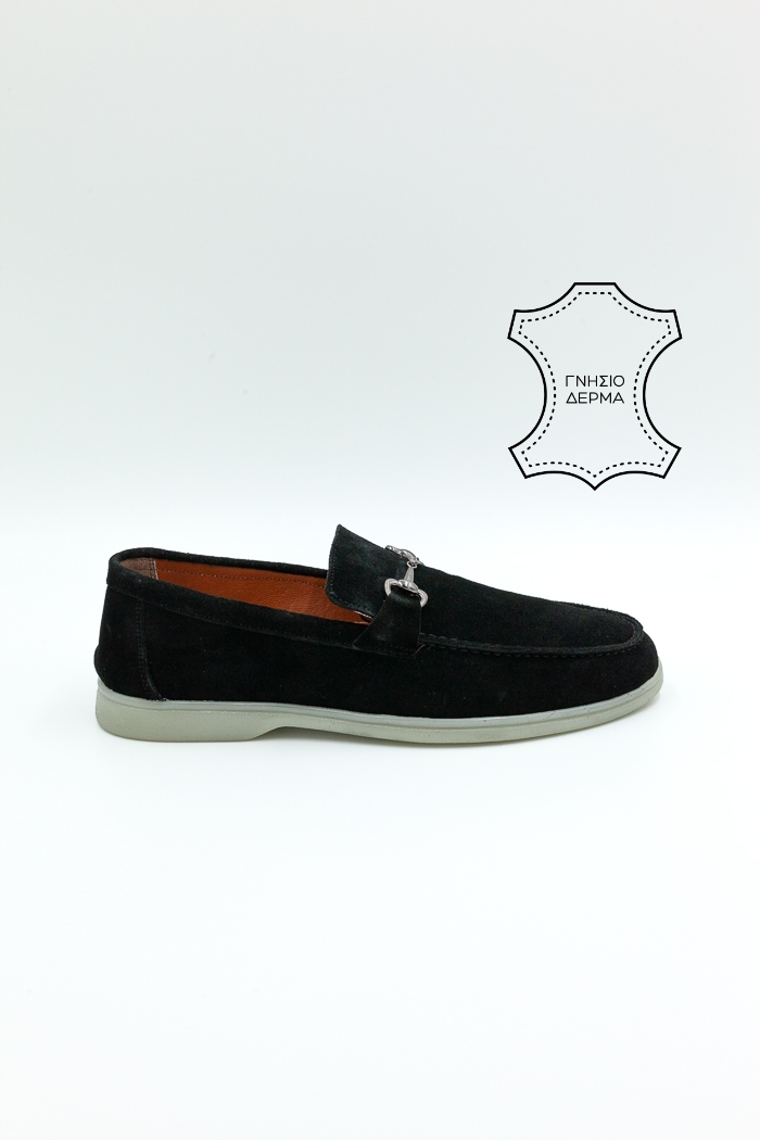 Ανδρικά Suede  δερμάτινα Μοκασίνια-Μαύρο