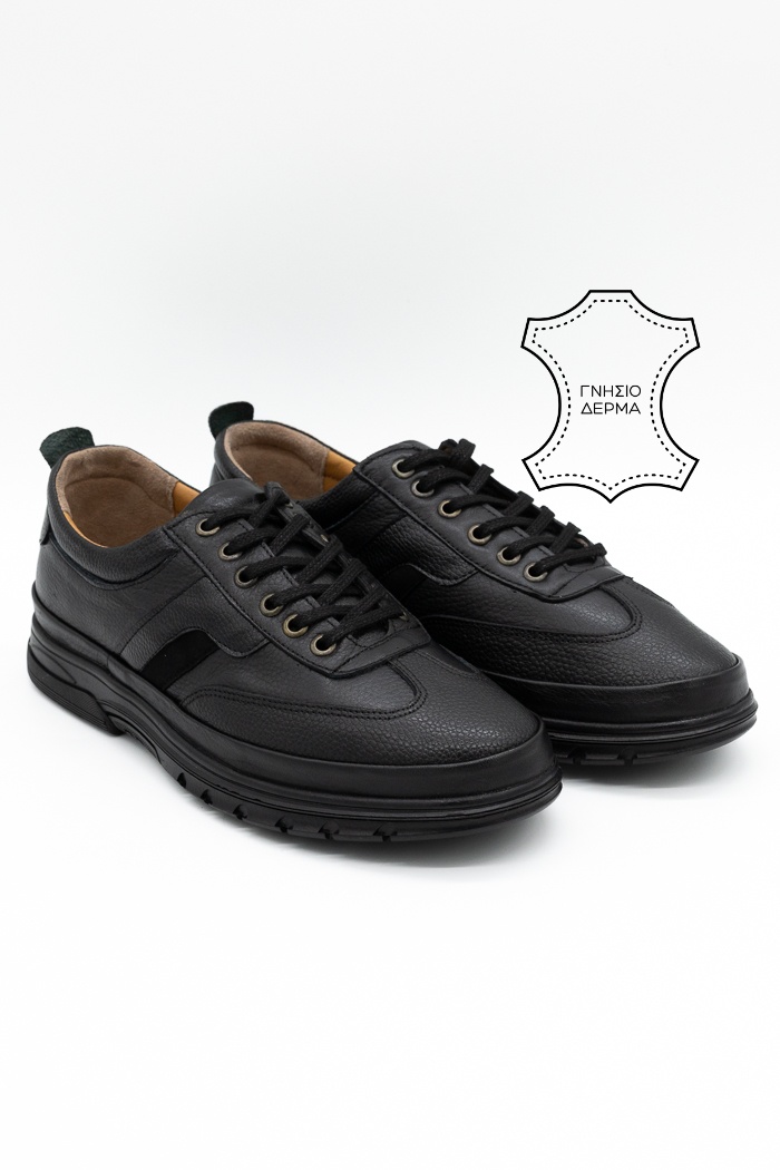 Ανδρικά δερμάτινα casual υποδήματα M181-Μαύρο