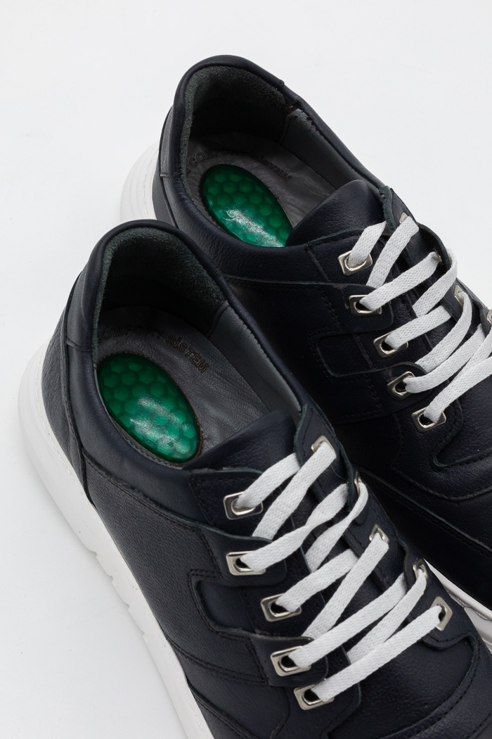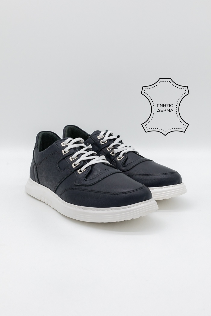 • Ανδρικά δερμάτινα sneakers με ανατομικό πάτο gel L-0725 Μπλέ