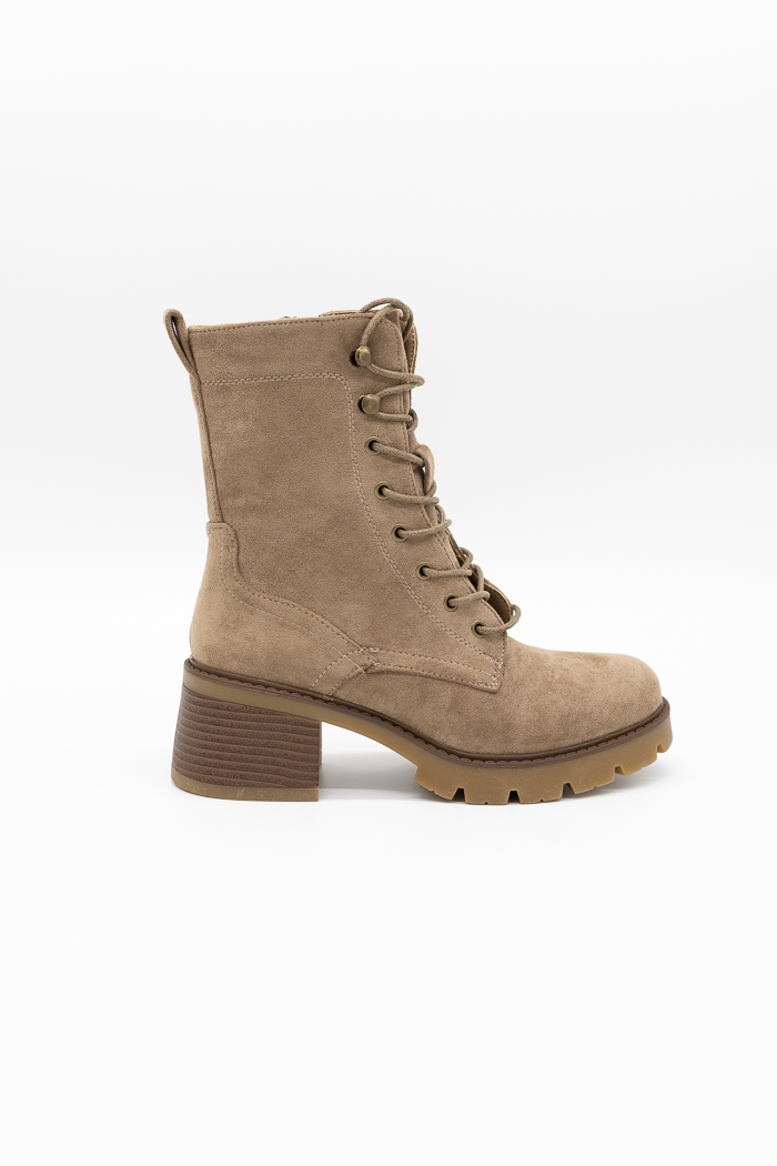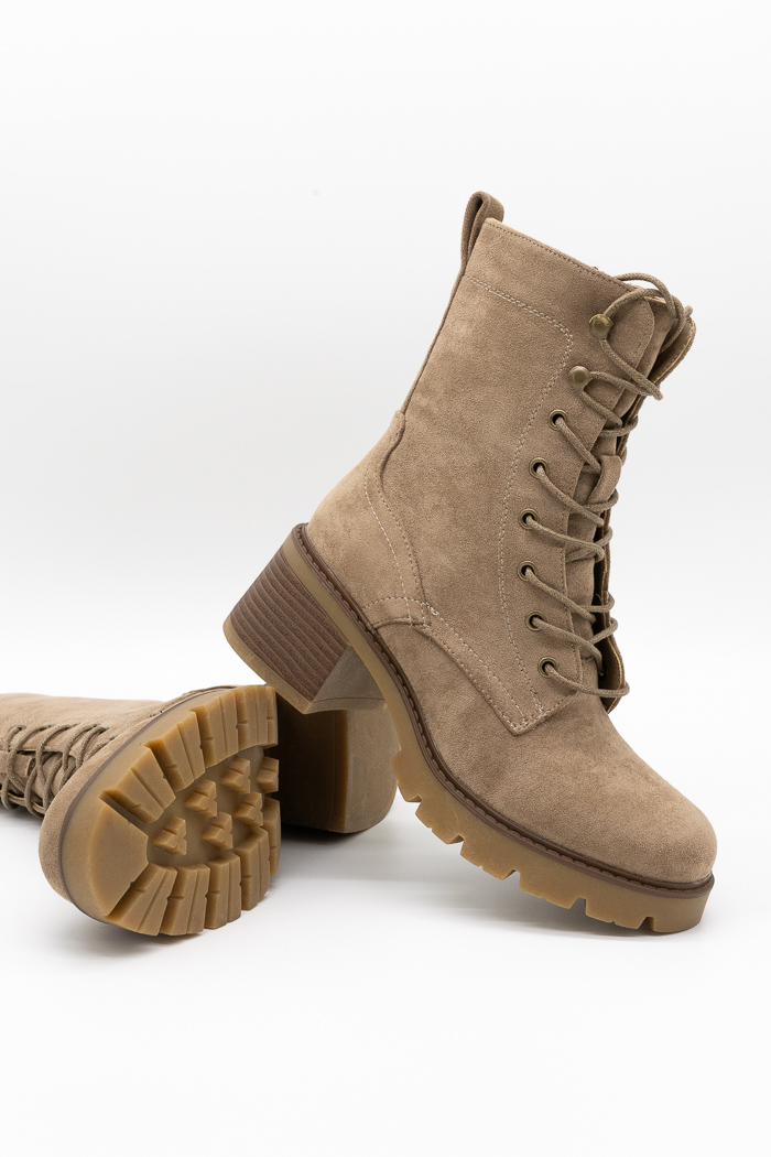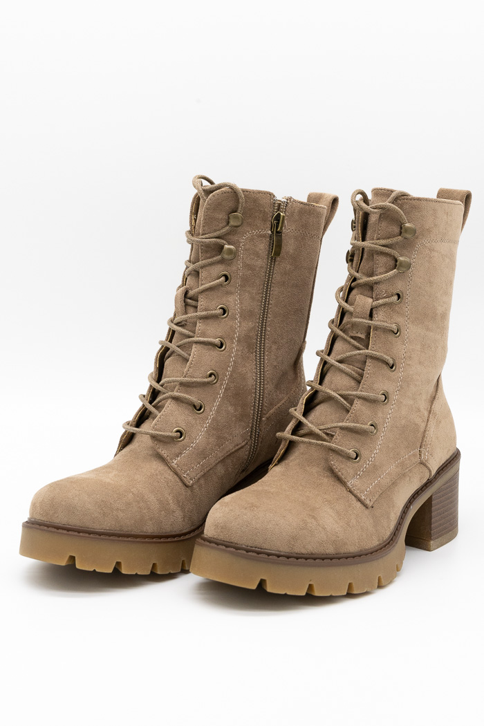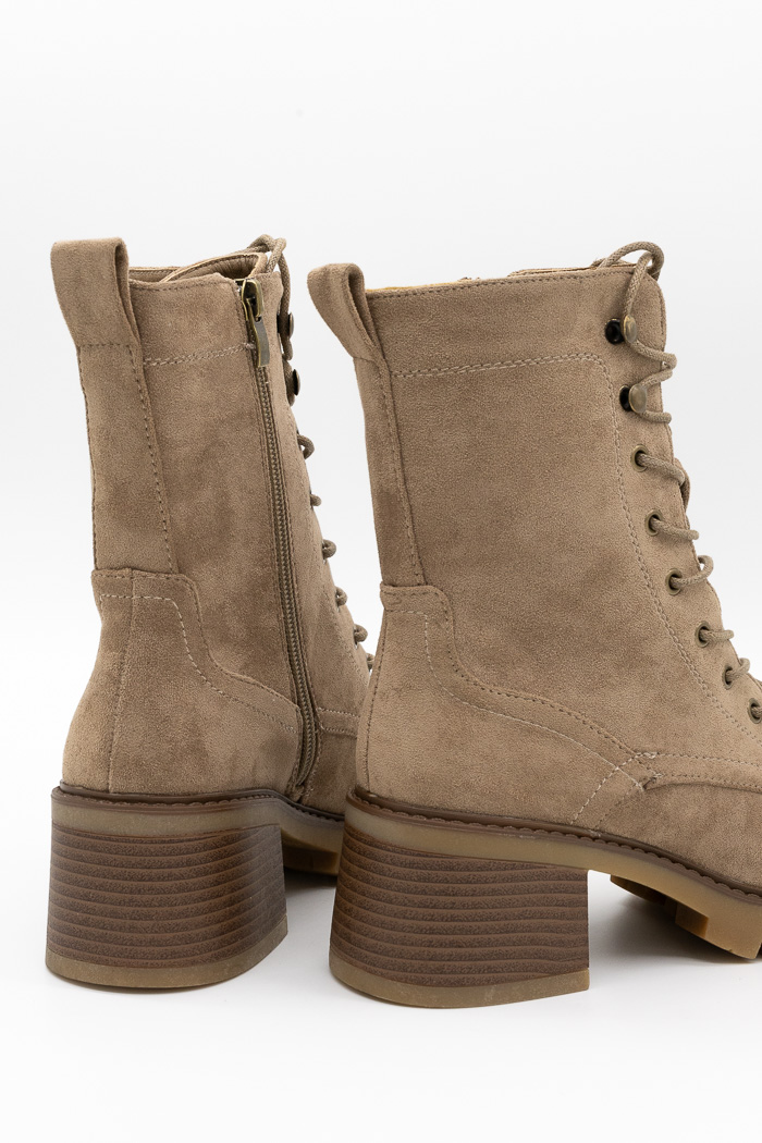 Suede αρβυλάκια με τακούνι, φερμουάρ και κορδόνια, ιδανικά για δυναμικές και κομψές καθημερινές εμφανίσεις.