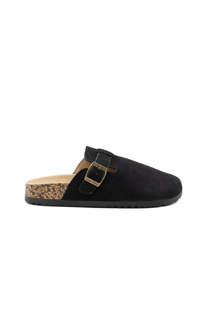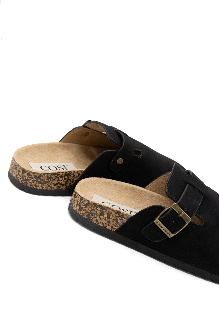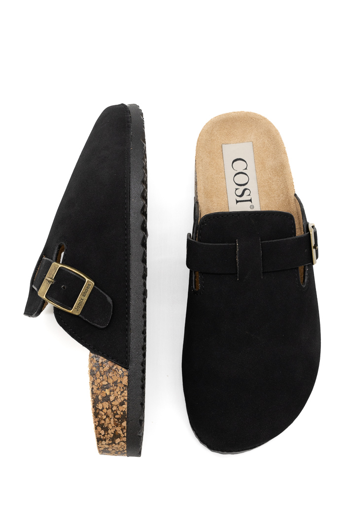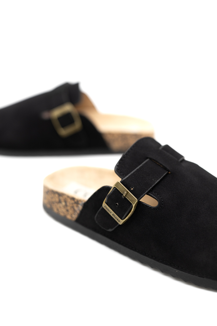 Clogs suede με προσαρμοζόμενο λουράκι στο πλάι 250738-Μαύρο