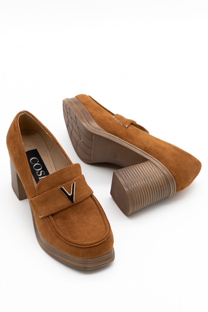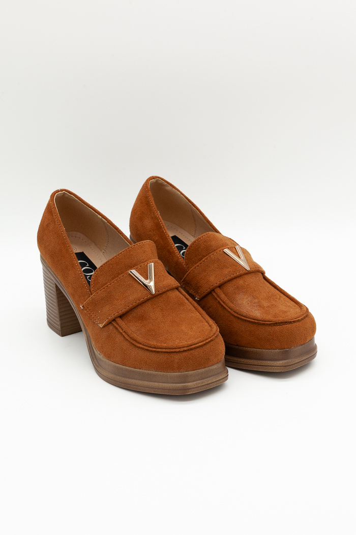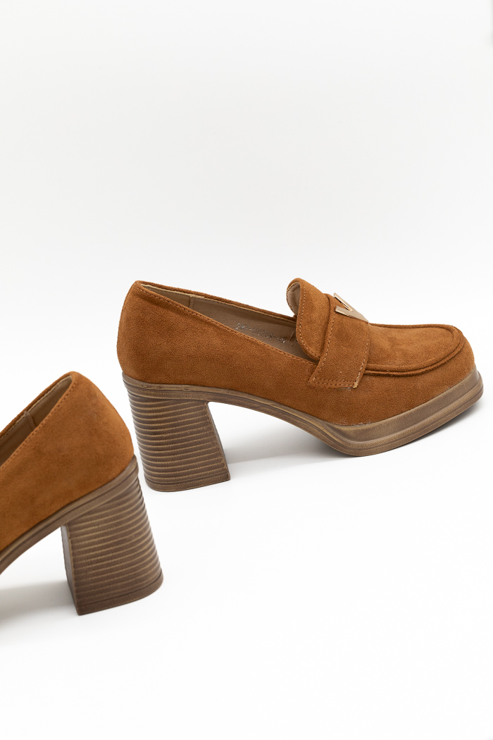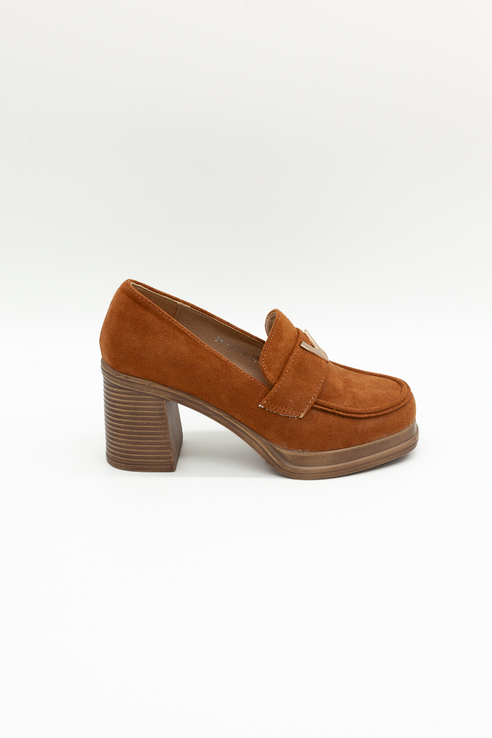 • Loafers suede με τετράγωνο τακούνι και μεταλλική λεπτομέρεια- Ταμπά