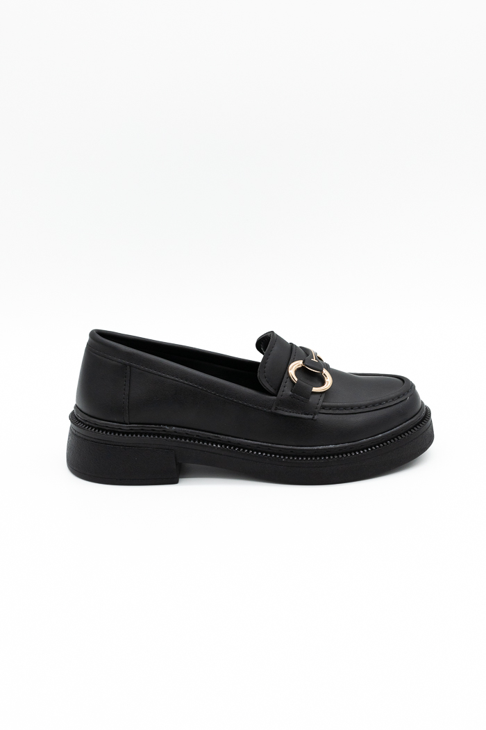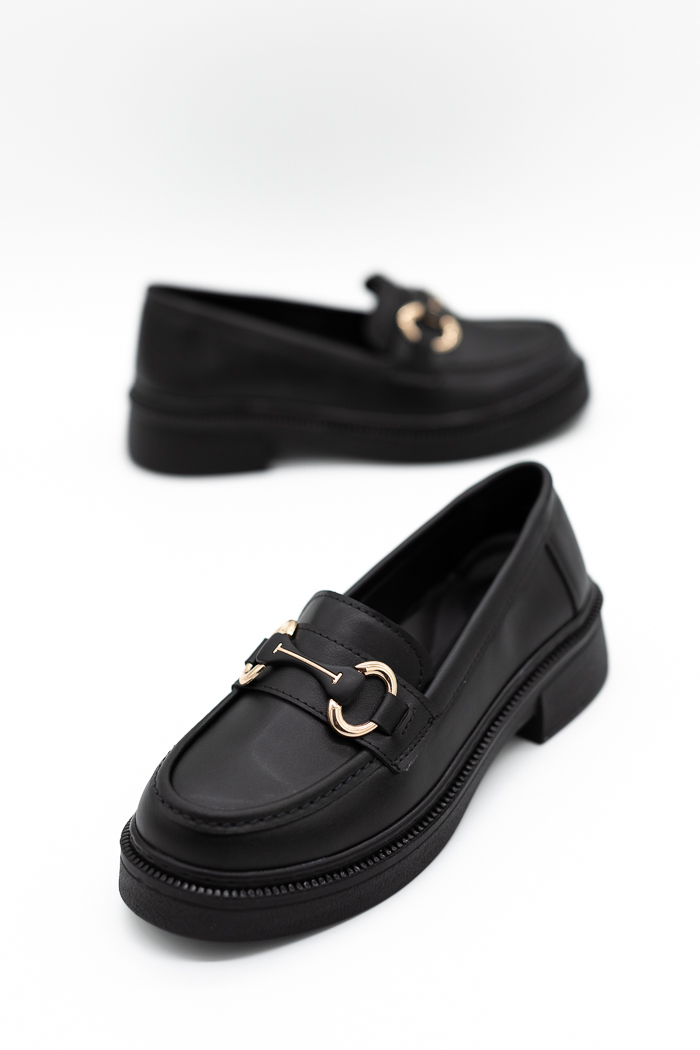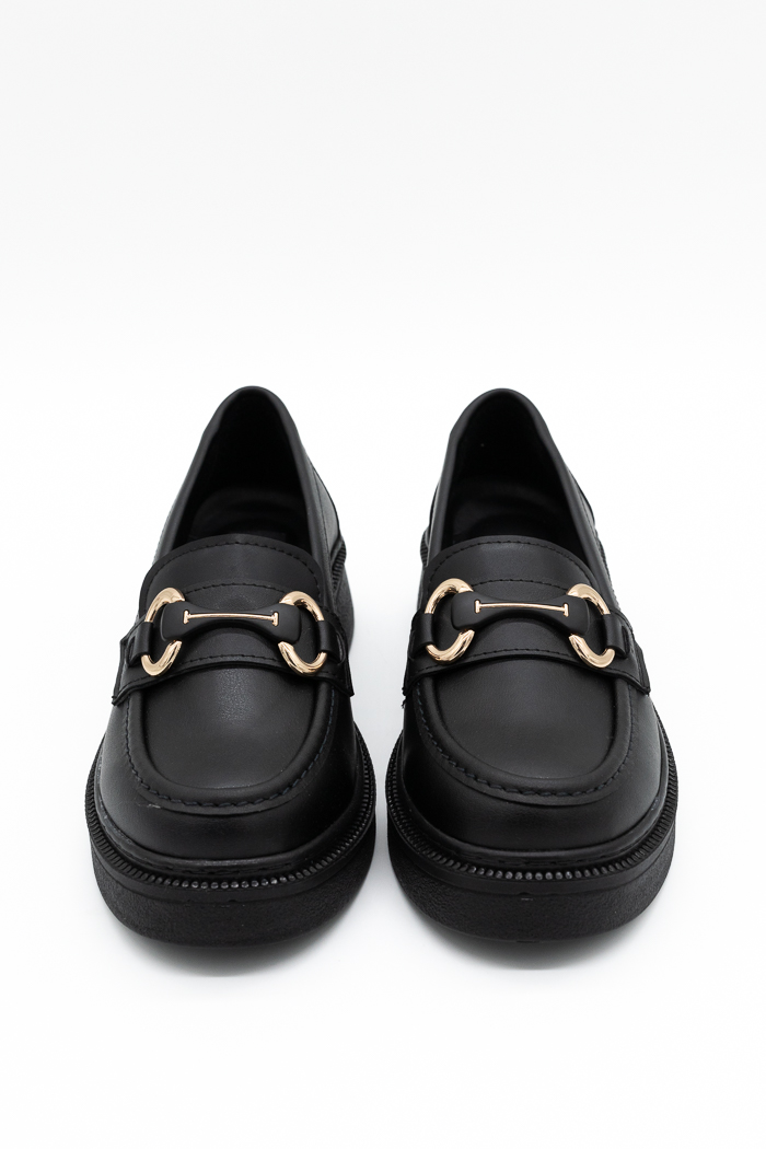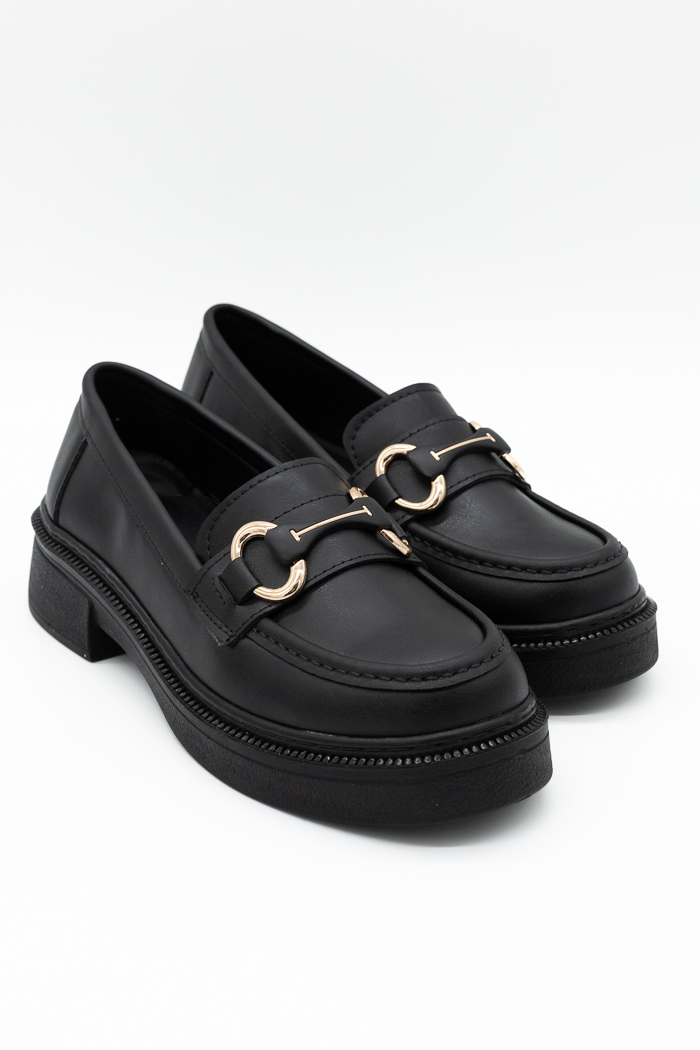 Loafers με μεταλλική αγκράφα & τακούνι-Μαύρο