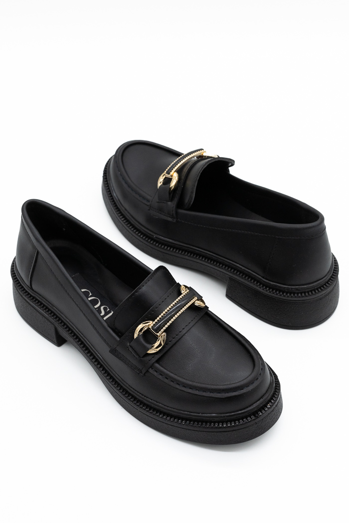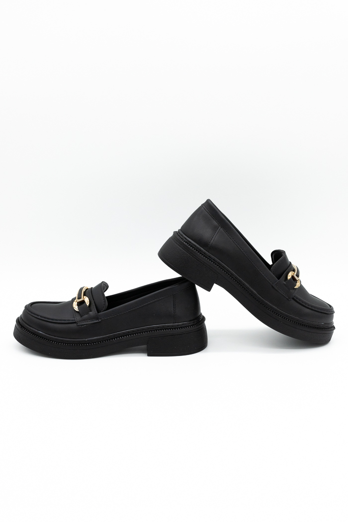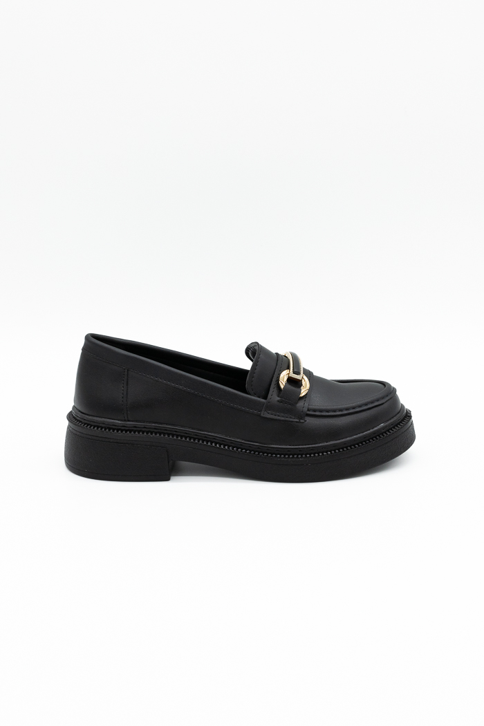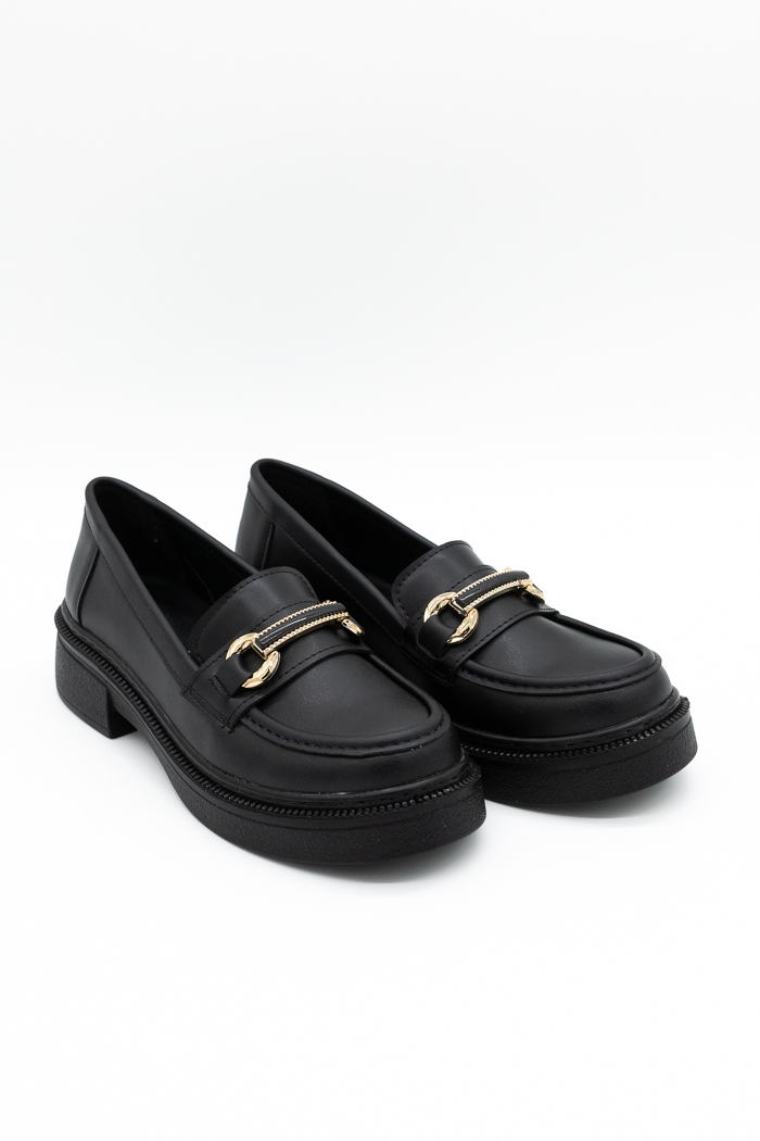Loafers με μεταλλική αγκράφα & τακούνι-Μαύρο
