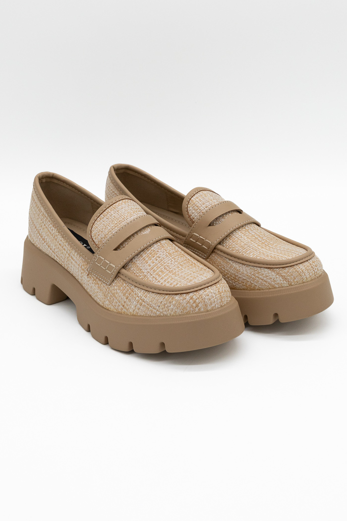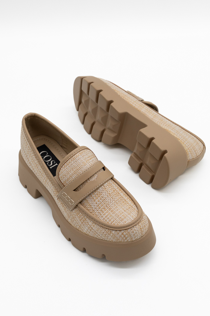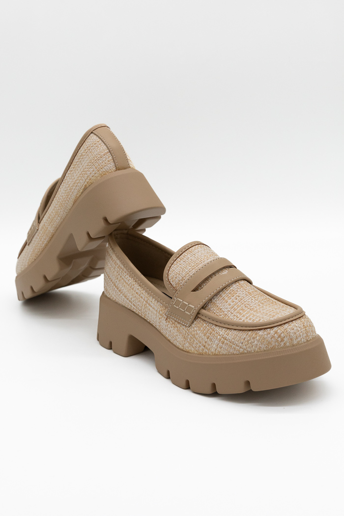 Loafers με τρακτερωτή σόλα τύπου ψάθα-Μπεζ