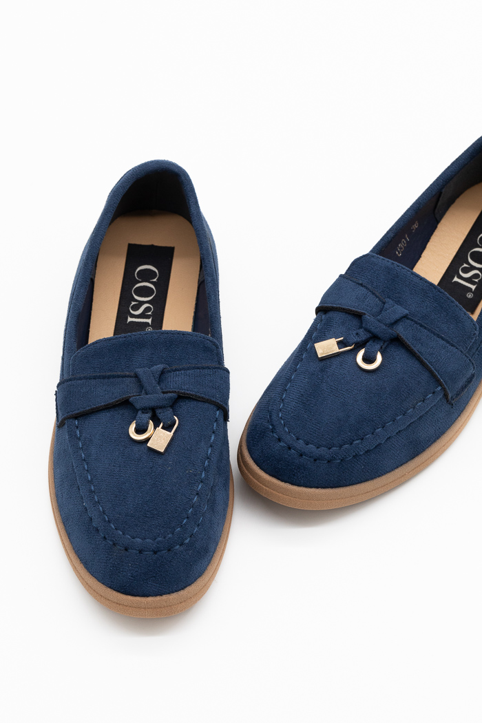Loafers suede με διακοσμητική λεπτομέρεια- Μπλε