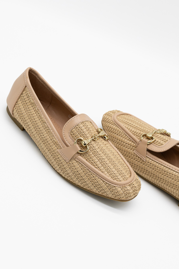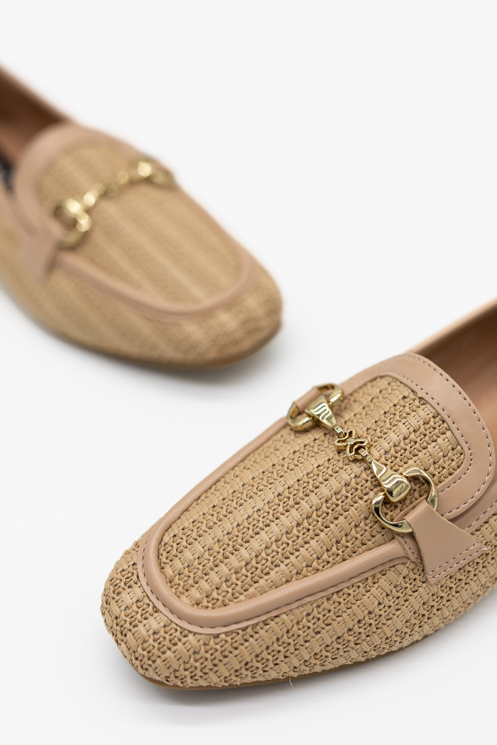 Μοκασίνια με διακοσμητική λεπτομέρεια τύπου ψάθα-Μπεζ
