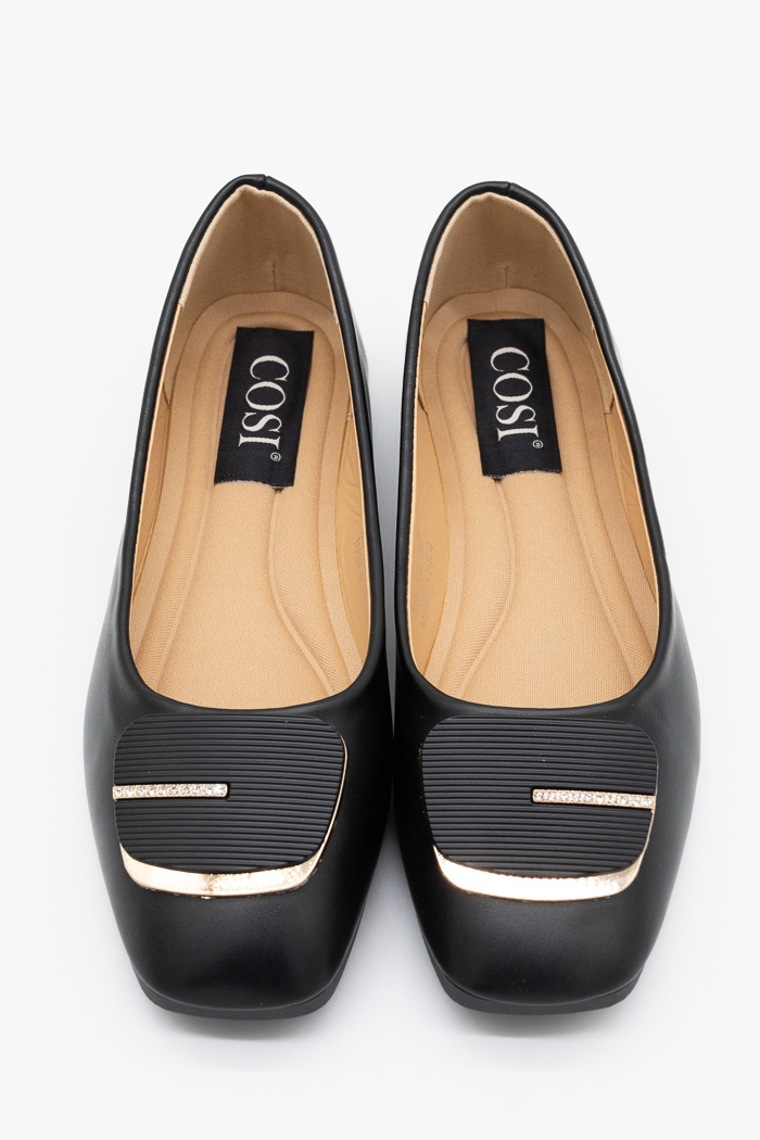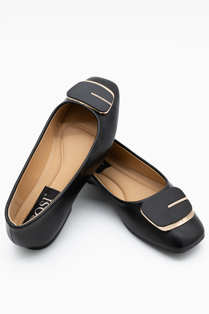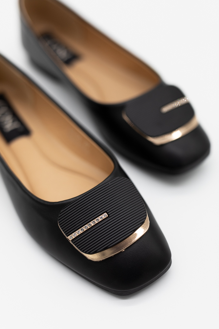 Μπαλαρίνες με μεταλλική λεπτομέρεια & strass-Μαύρο