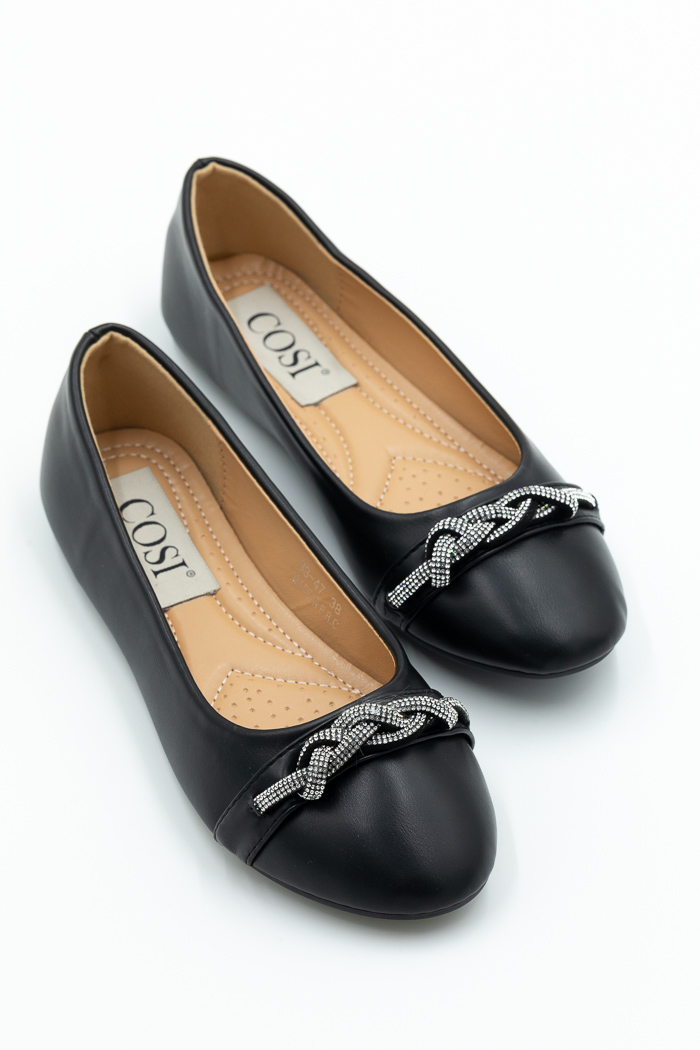 Μπαλαρίνες με strass λουράκι-Μαύρο