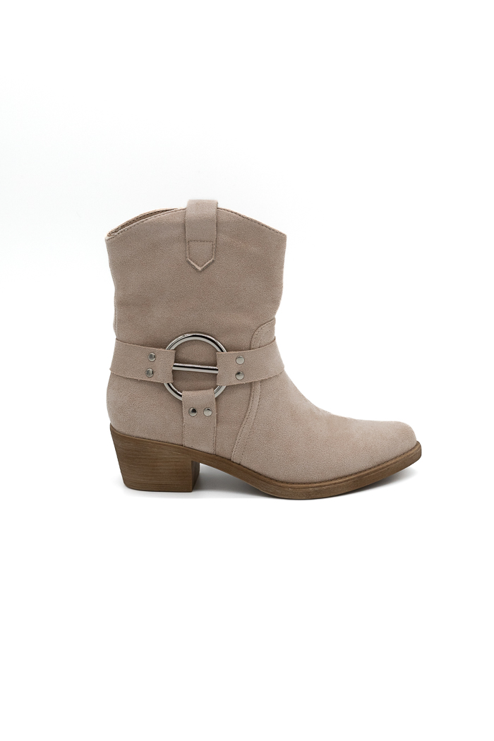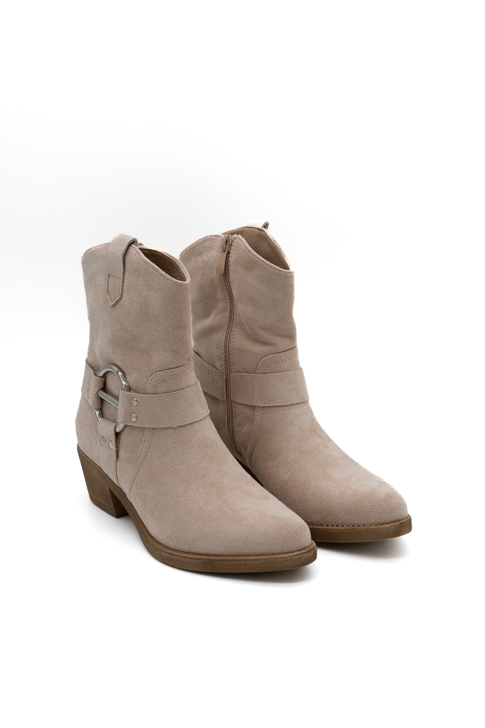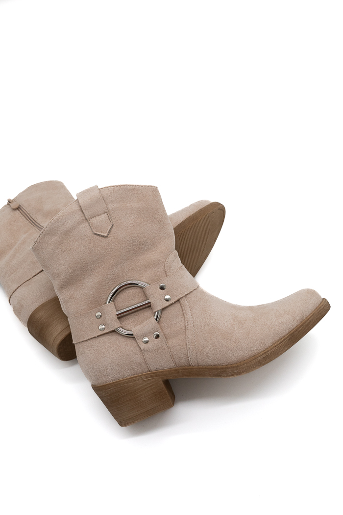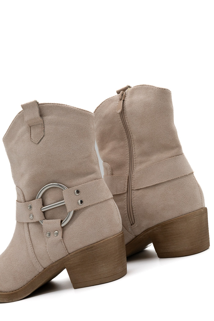 Μποτάκια cowboy suede με αγκράφα-Μπεζ