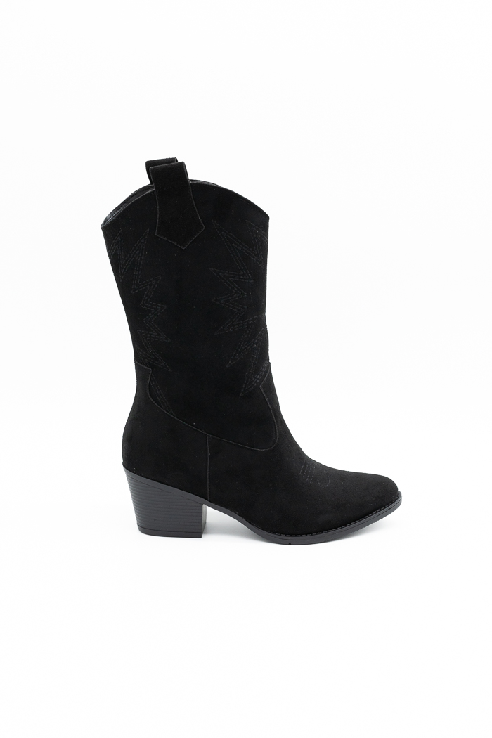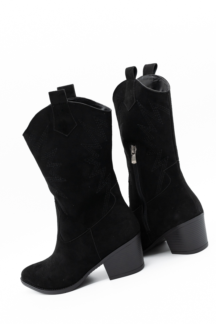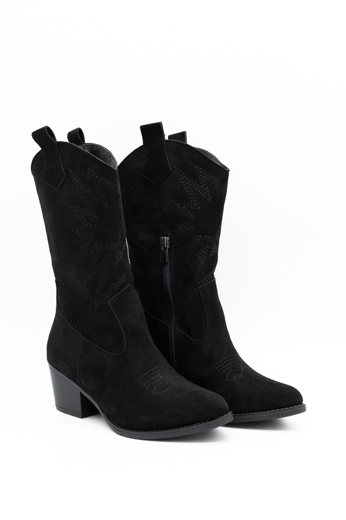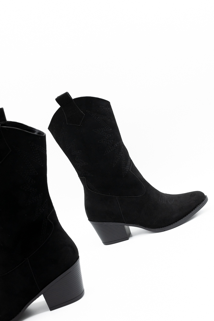 Μποτάκια cowboy suede με σχέδιο στο πλάι-Μαύρο