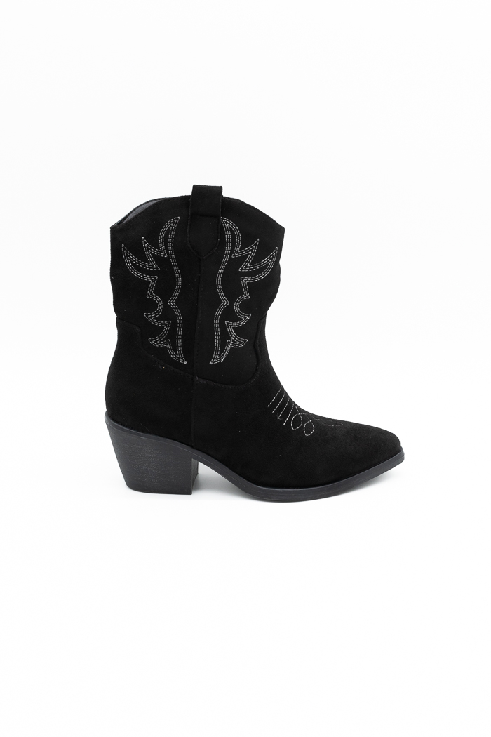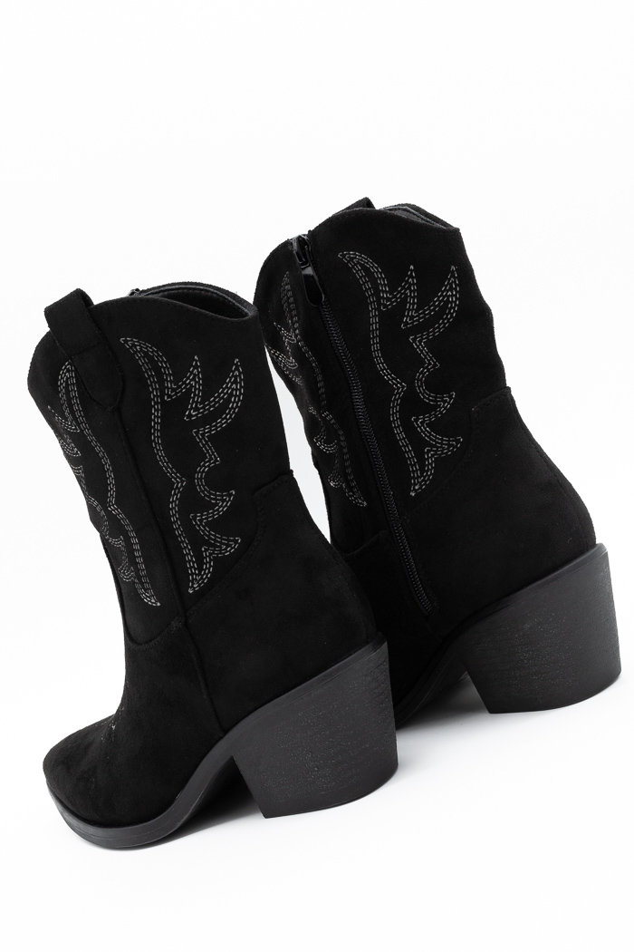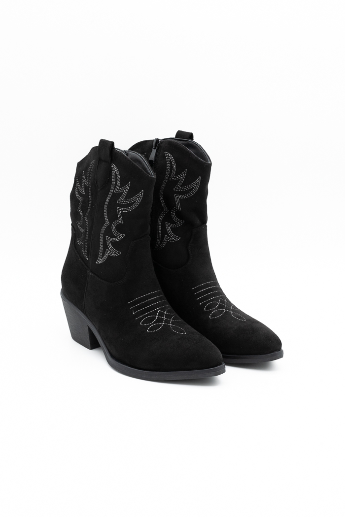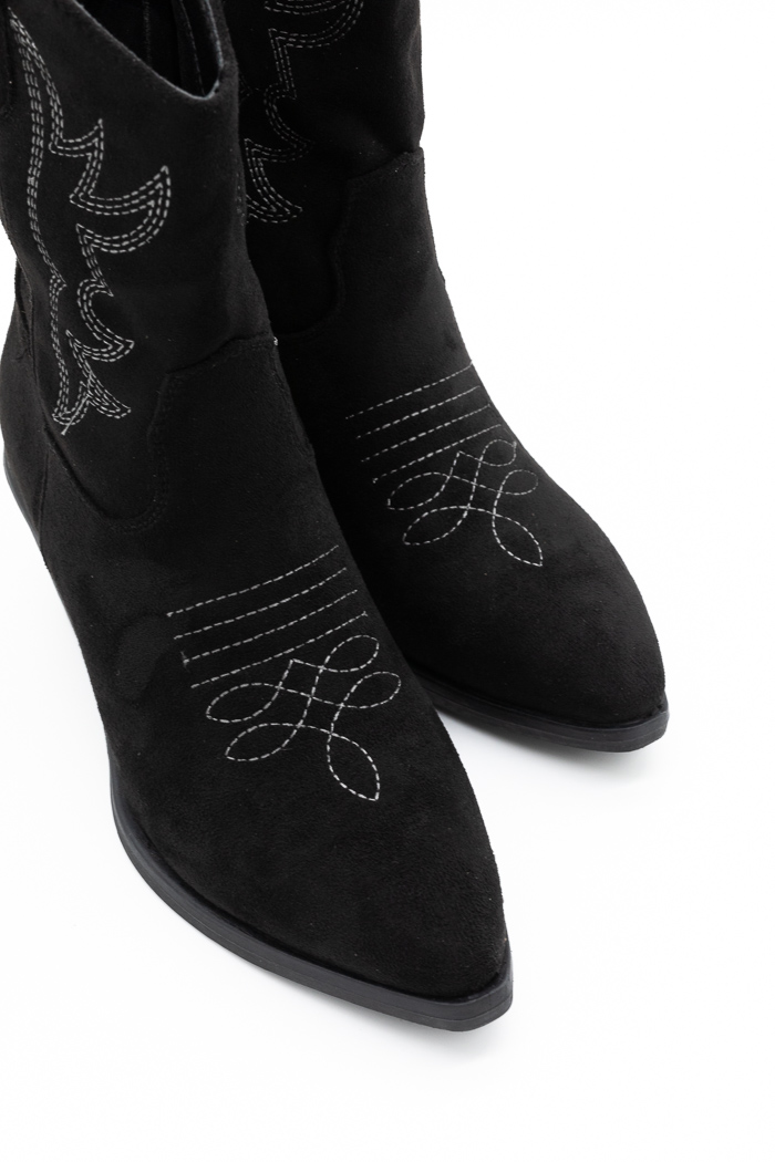Μποτάκια cowboy suede με σχέδιο στο πλάι-Μαύρο