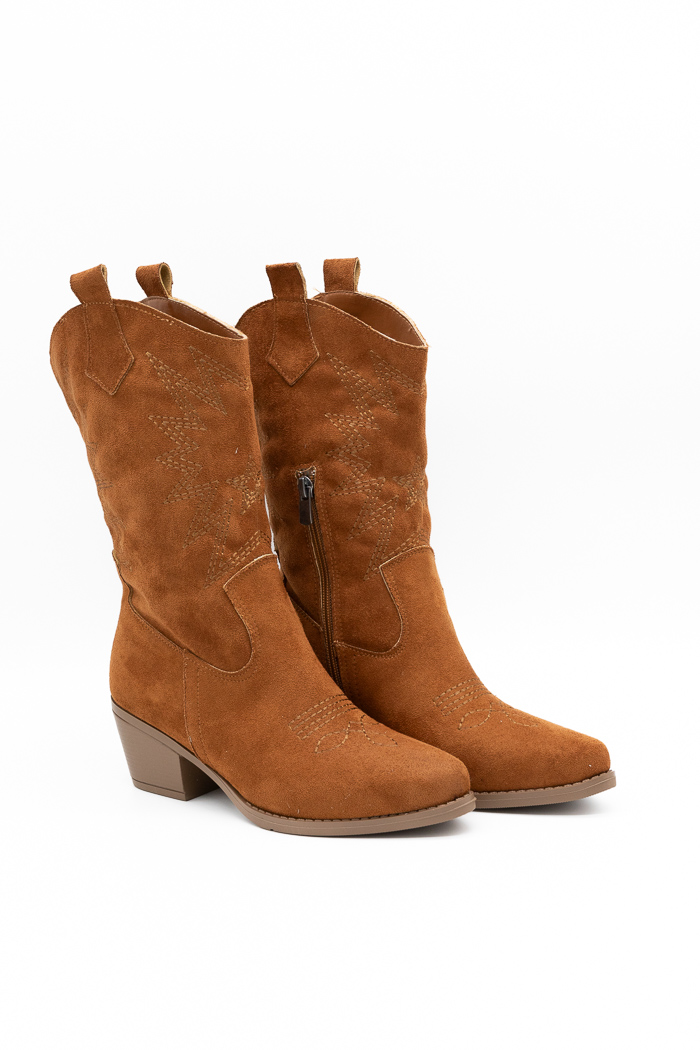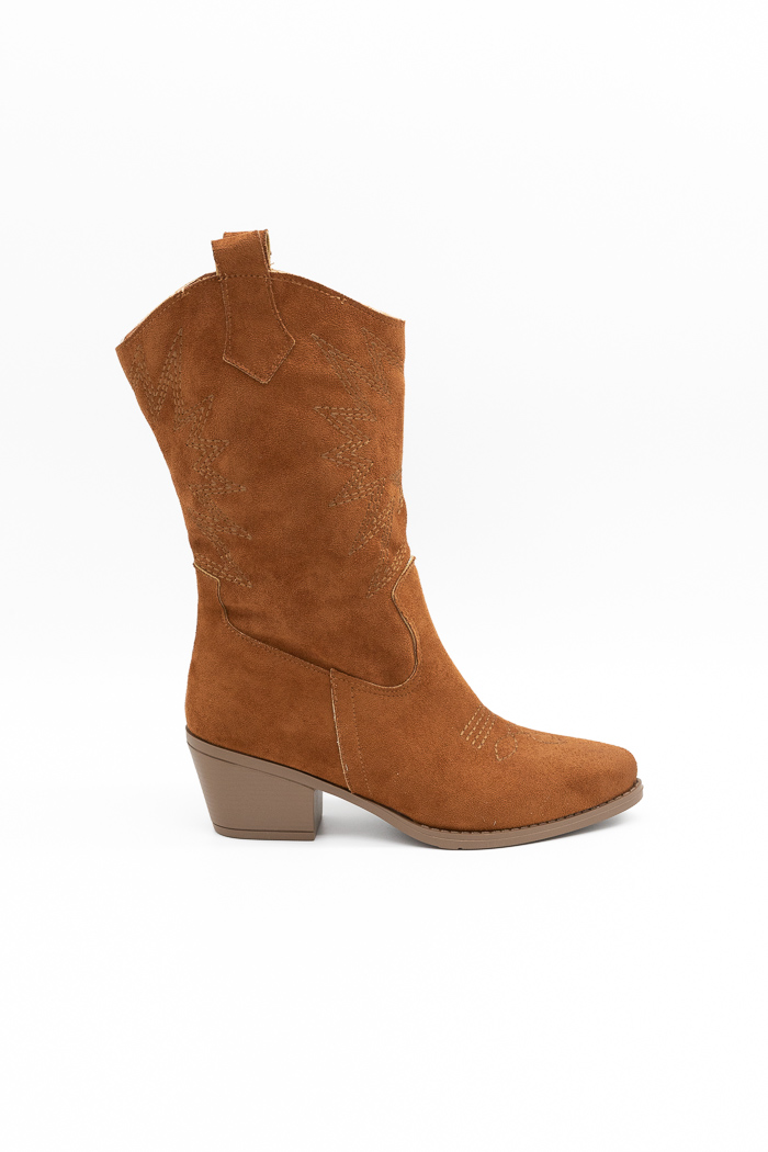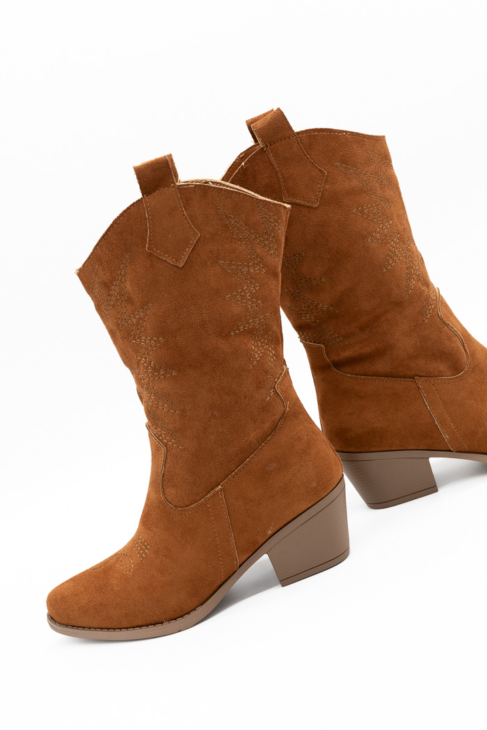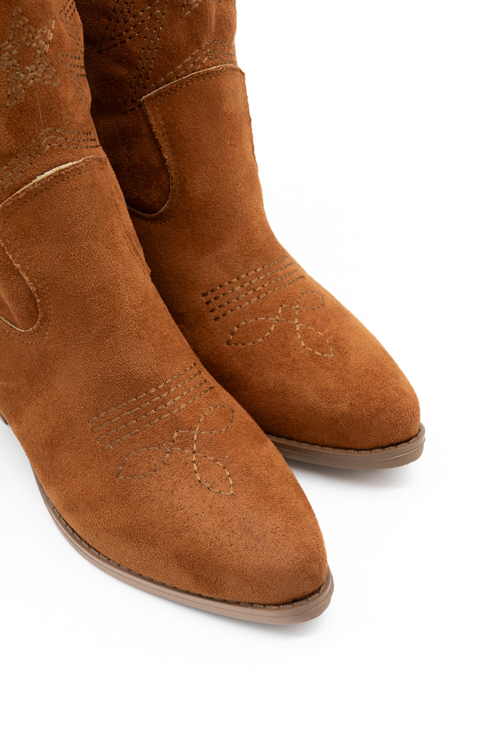 Μποτάκια cowboy suede με σχέδιο στο πλάι-Ταμπά