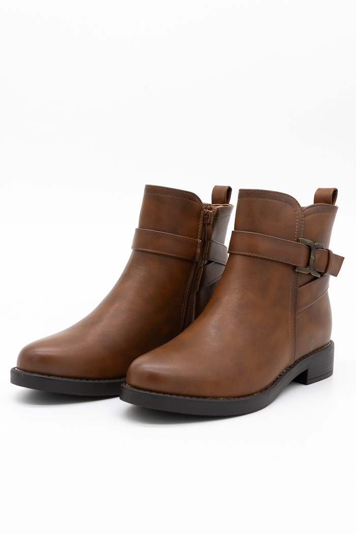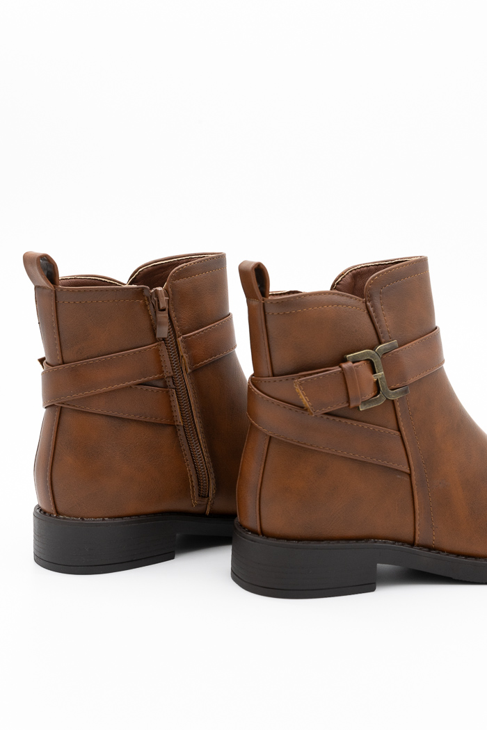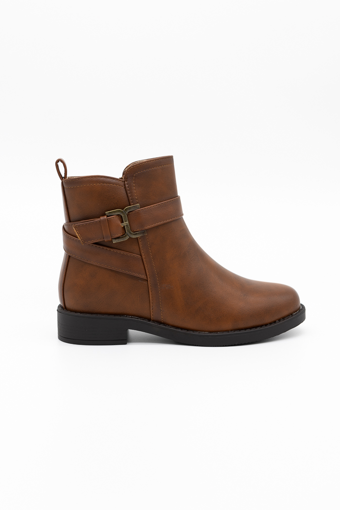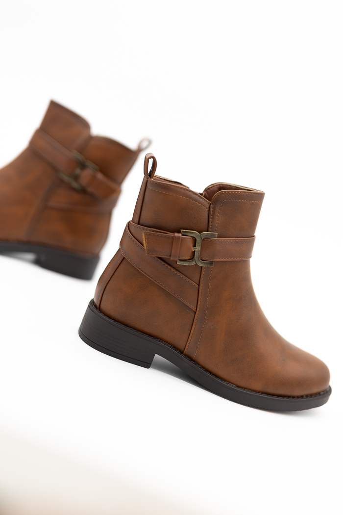 Μποτάκια flat με διακοσμητική αγκράφα QP1267TAN Ταμπά
