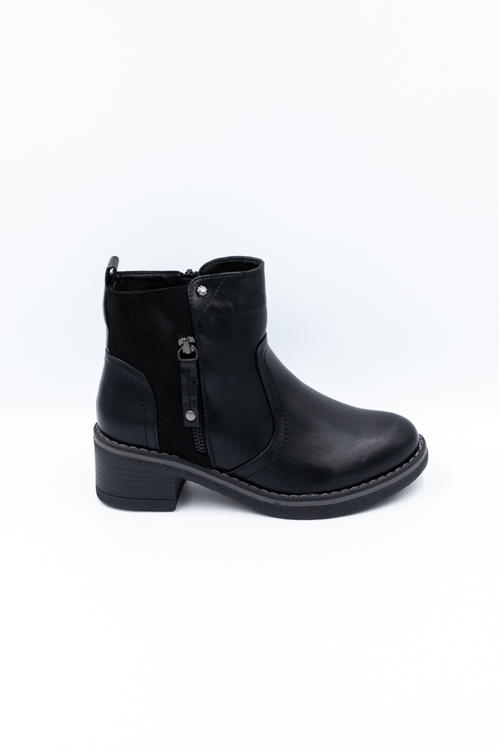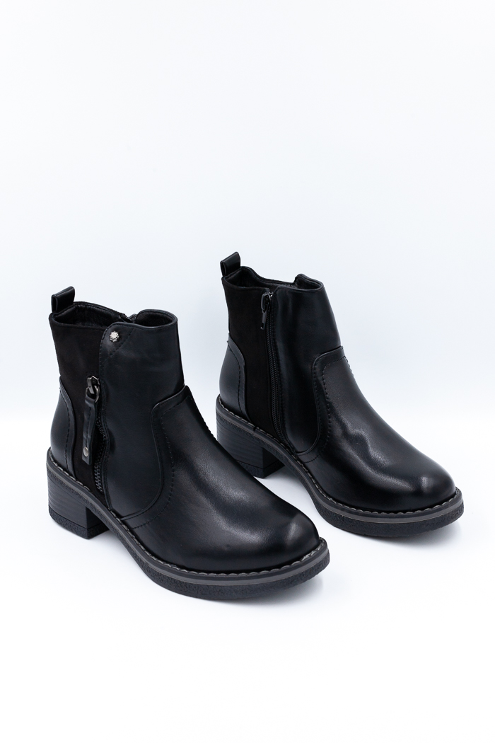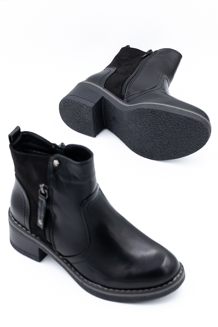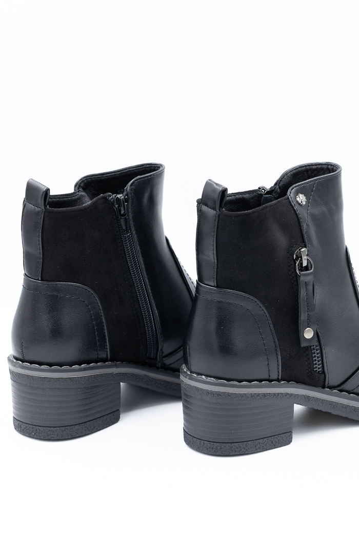 • Μποτάκια με διακοσμητικό φερμουάρ και κρεπ τακούνι-Μαύρο