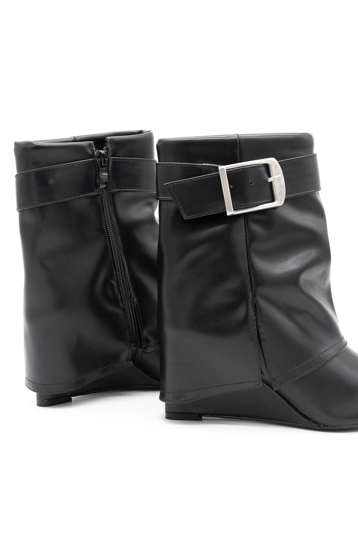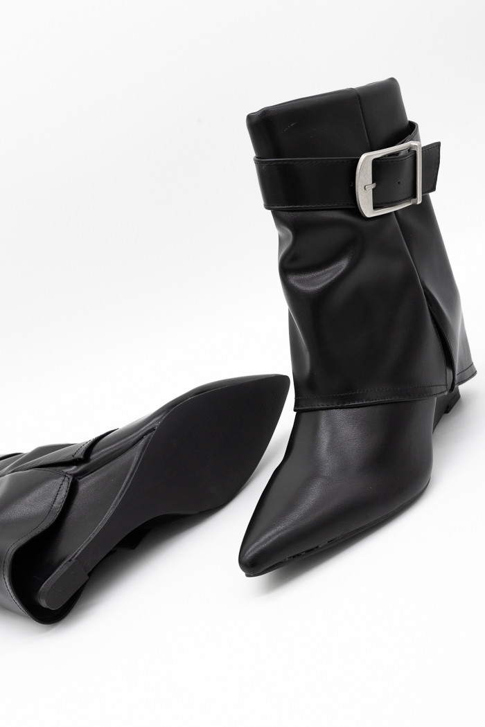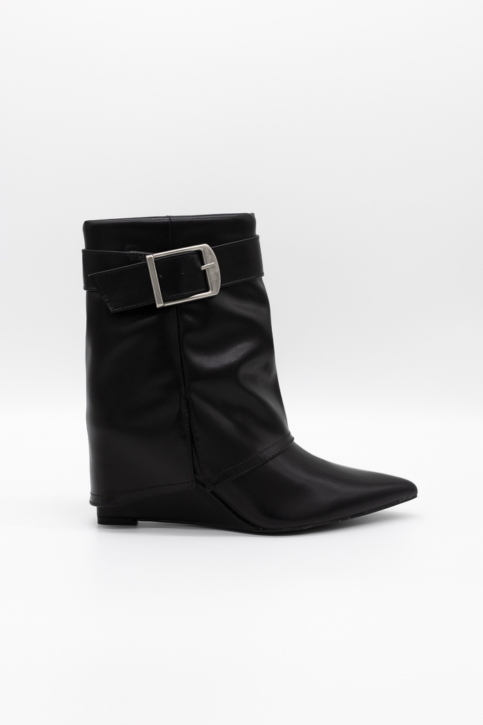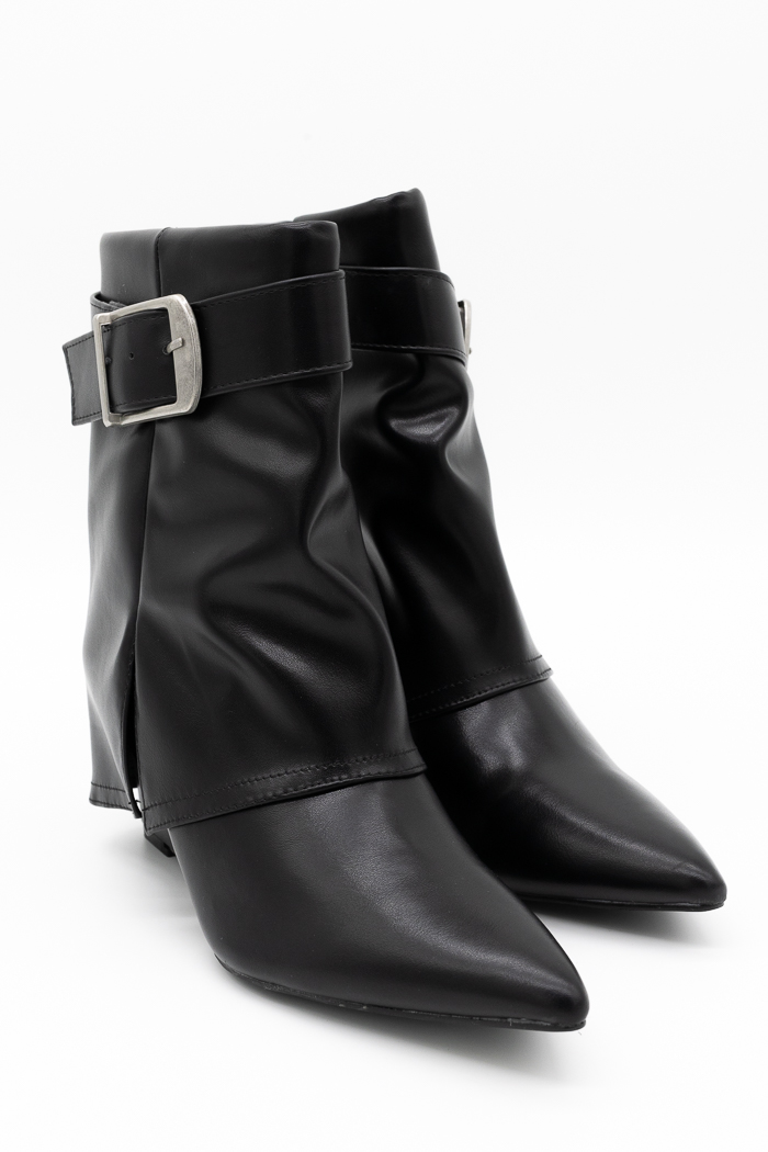 Μποτάκια μυτερά με πλατφόρμα και διακοσμητικό λουράκι για μοντέρνο και κομψό στυλ. Προσφέρουν άνεση και σταθερότητα σε κάθε βήμα. Ιδανικά για καθημερινές και πιο προσεγμένες εμφανίσεις.