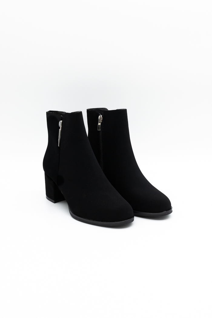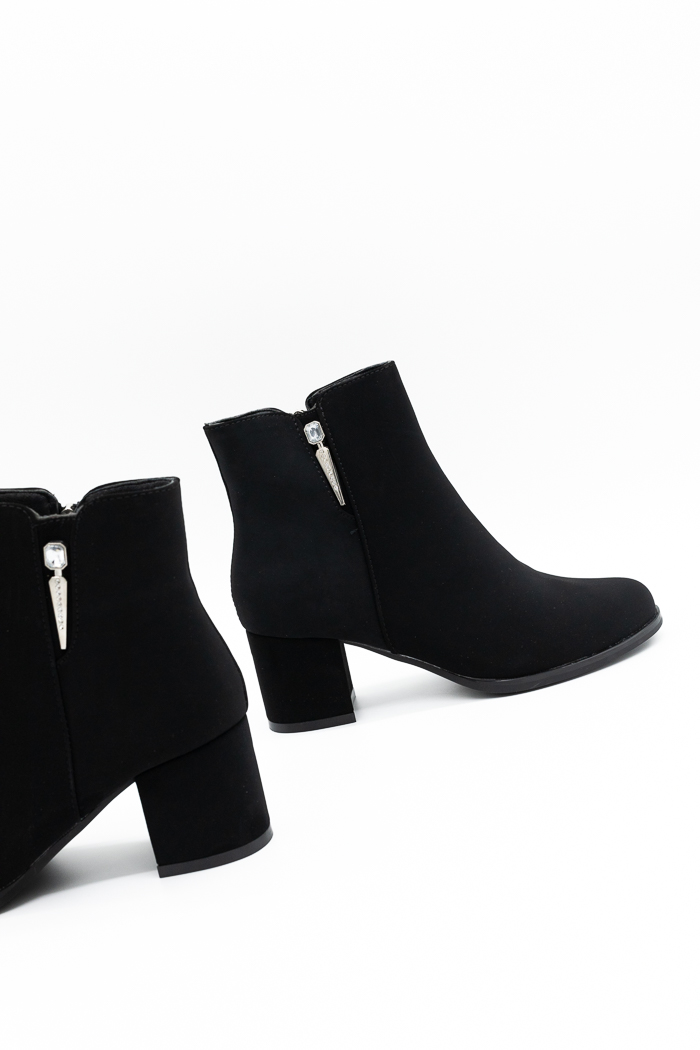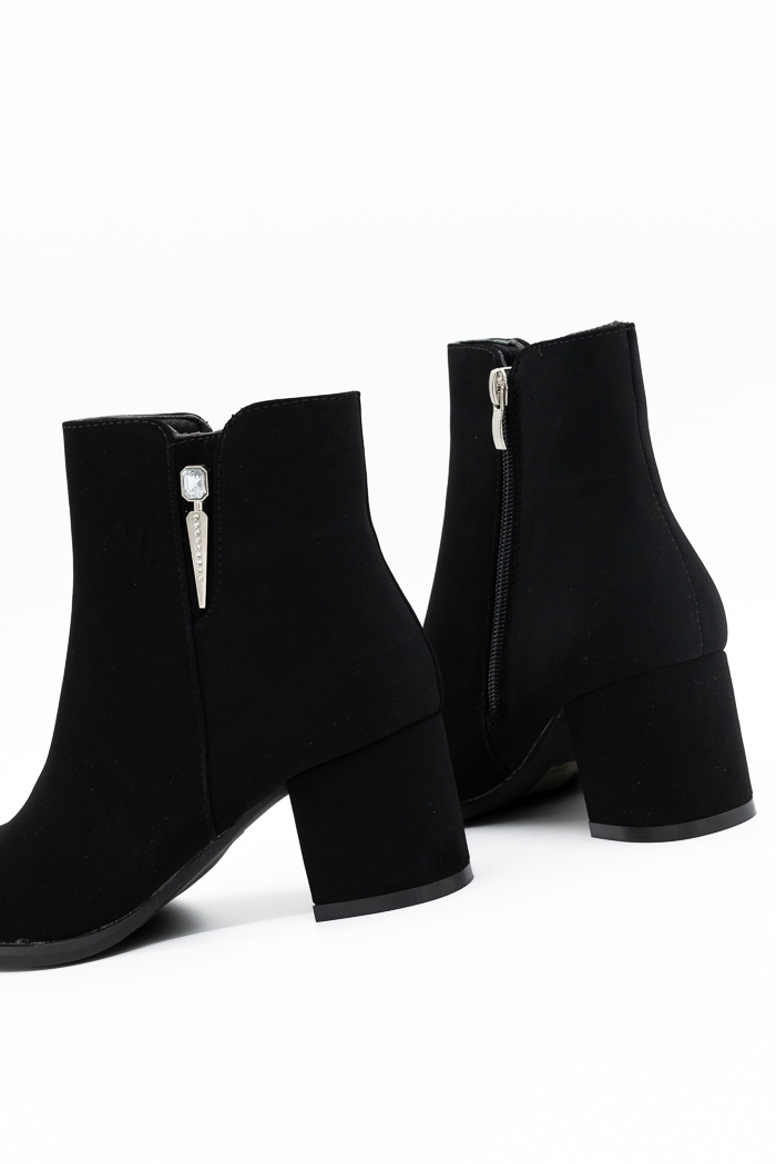 Μποτάκια suede με μεταλλική λεπτομέρεια στο πλάι-Μαύρο