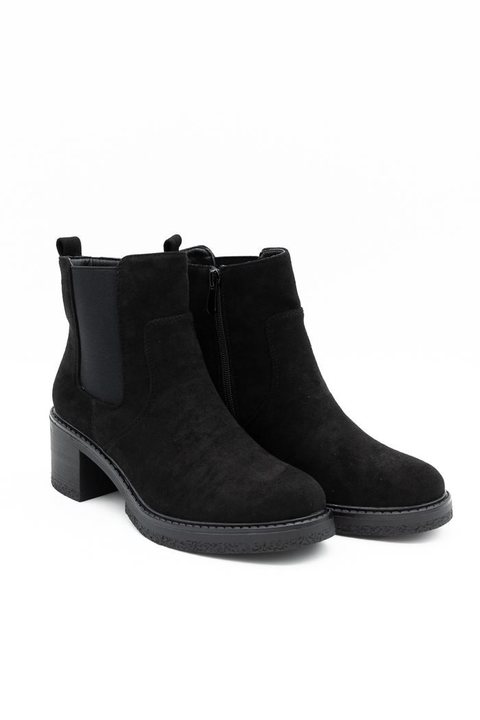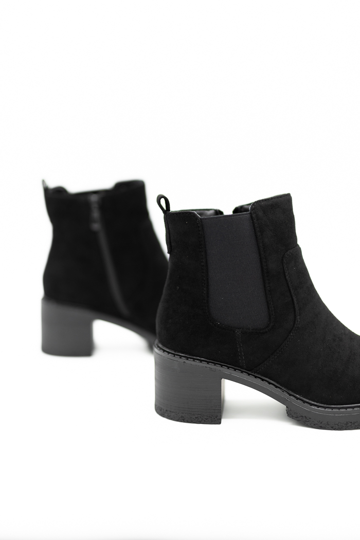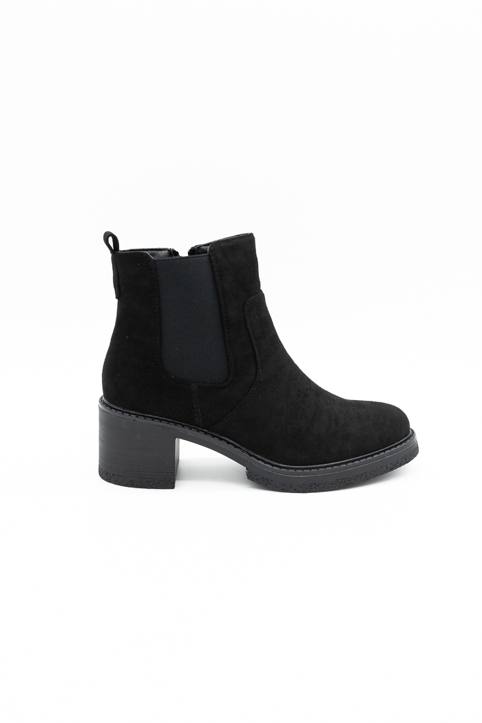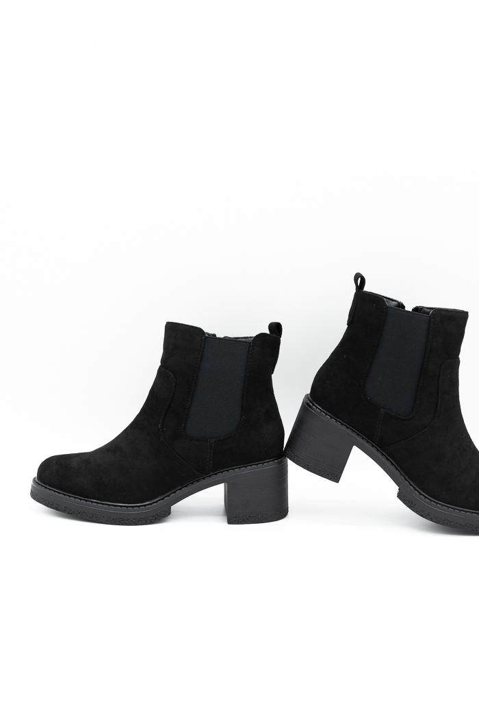 Μποτάκια suede με τετράγωνο τακούνι και λάστιχο στο πλάι-Μαύρο