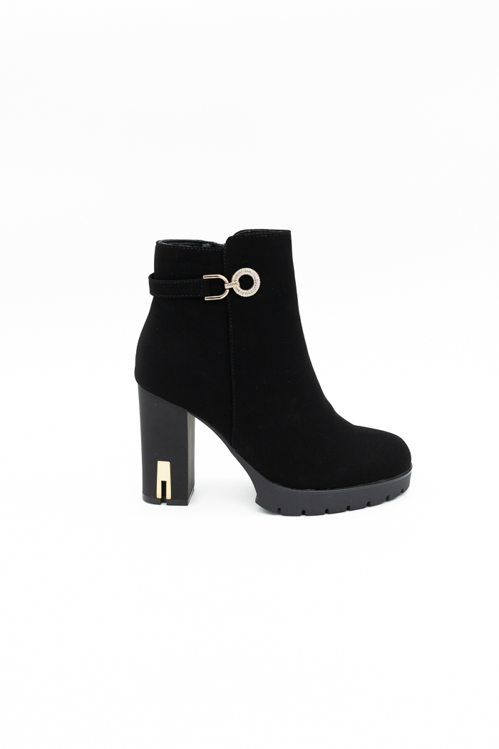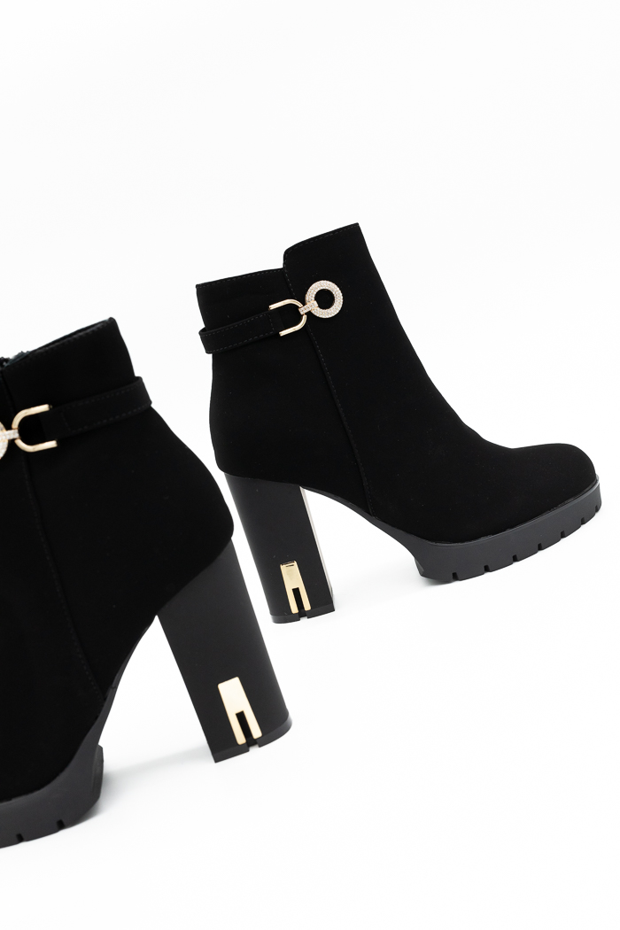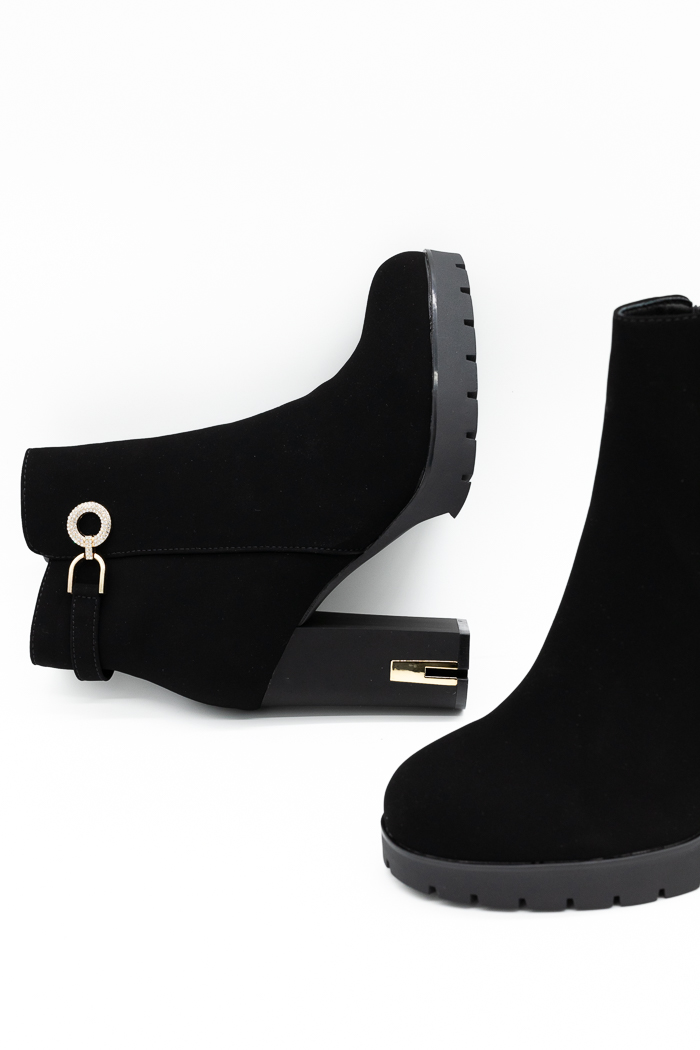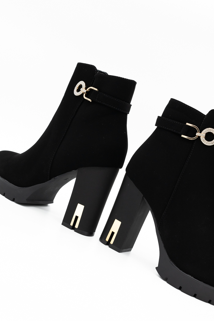 Ψηλοτάκουνα μποτάκια suede με λεπτομέρεια από strass-Μαύρο