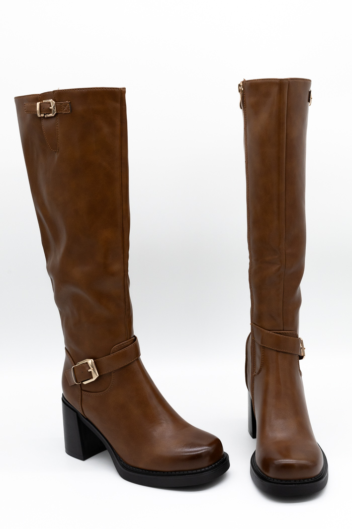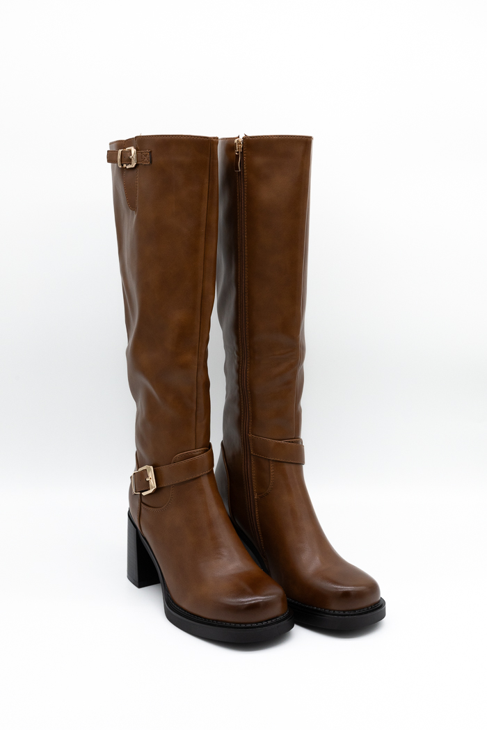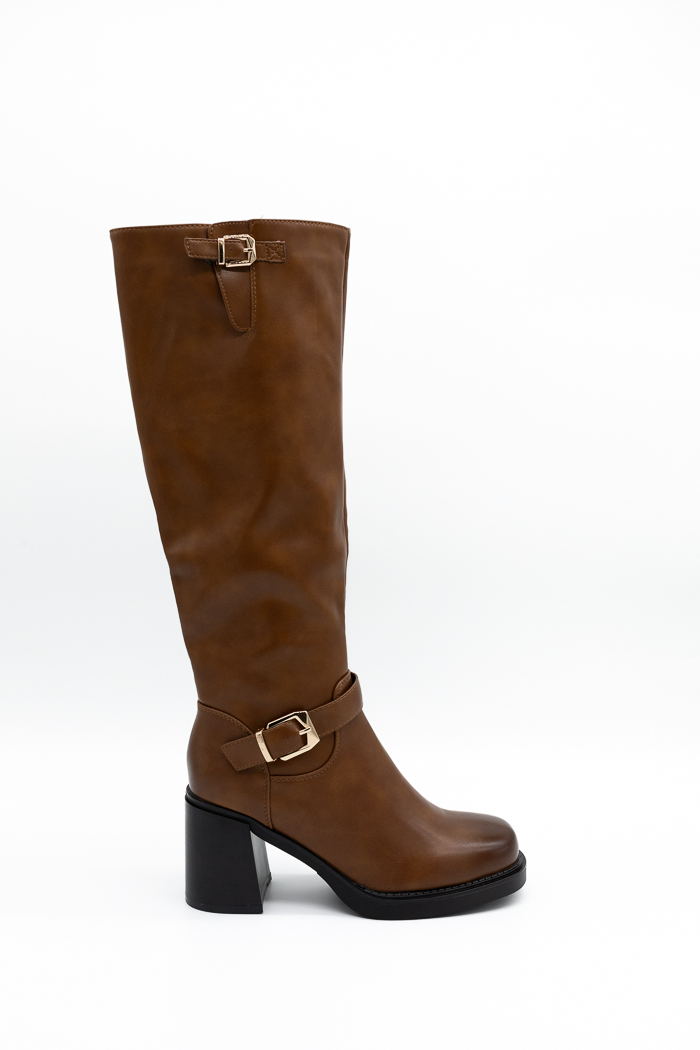 Μπότες με τακούνι και μεταλλικές λεπτομέρειες- Καφέ