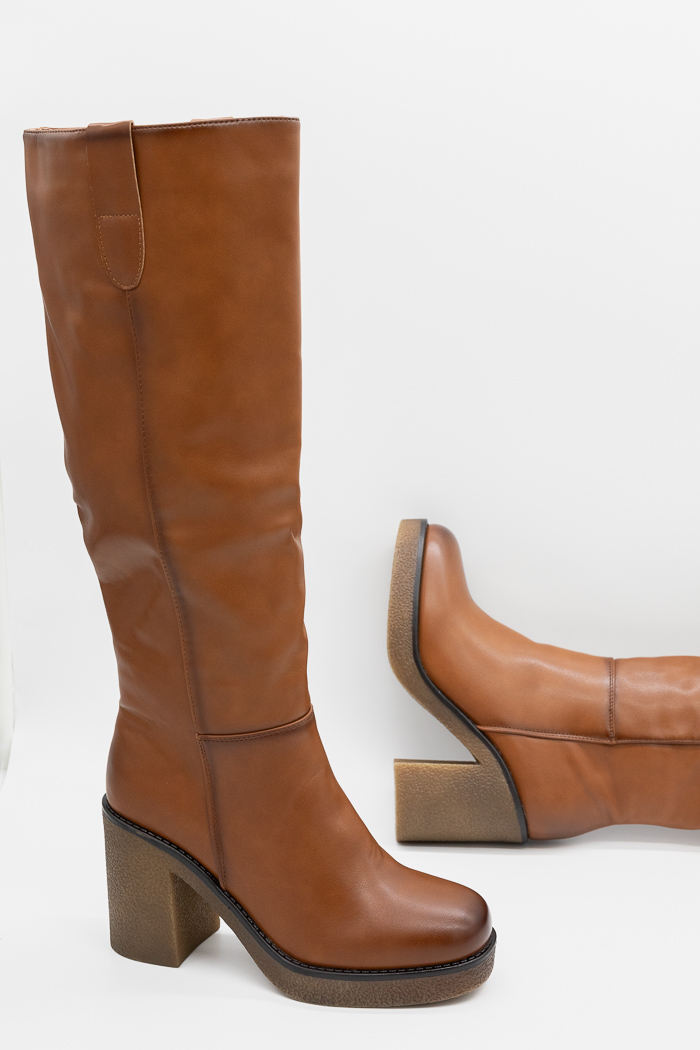Μπότες με τετράγωνο κρεπ τακούνι & φιάπα. Διαθέτουν αντιολισθητική κρεπ  σόλα για άνετο βάδισμα και φερμουάρ από την εσωτερική πλευρά για εύκολη εφαρμογή.