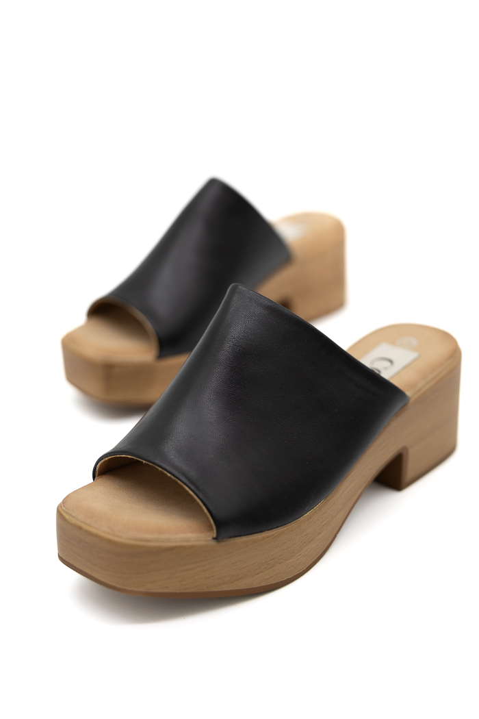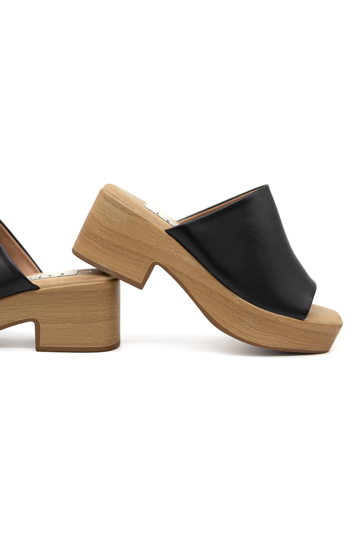 Mules με χοντρό τακούνι και πλατφόρμα L-16 Μαύρο
