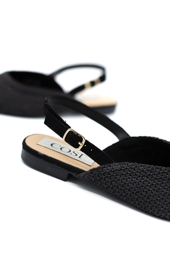 Mules μυτερά με ψάθινη πλέξη και λουράκι J2915-Μαύρο