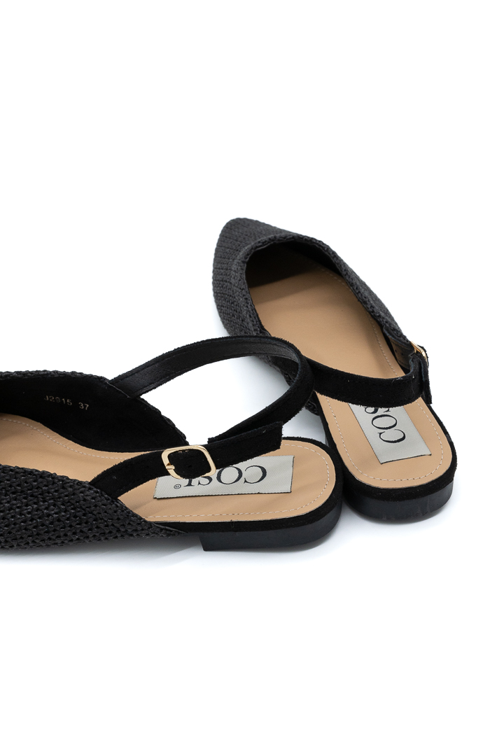• Mules μυτερά με ψάθινη πλέξη και λουράκι J2915-Μαύρο