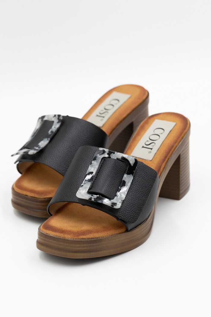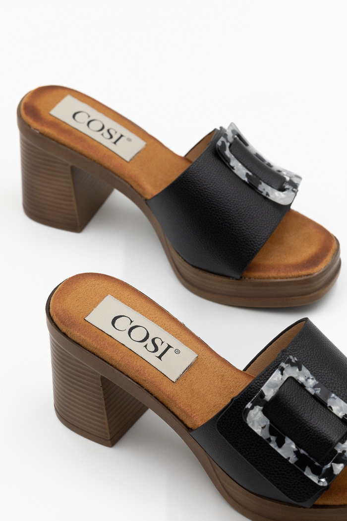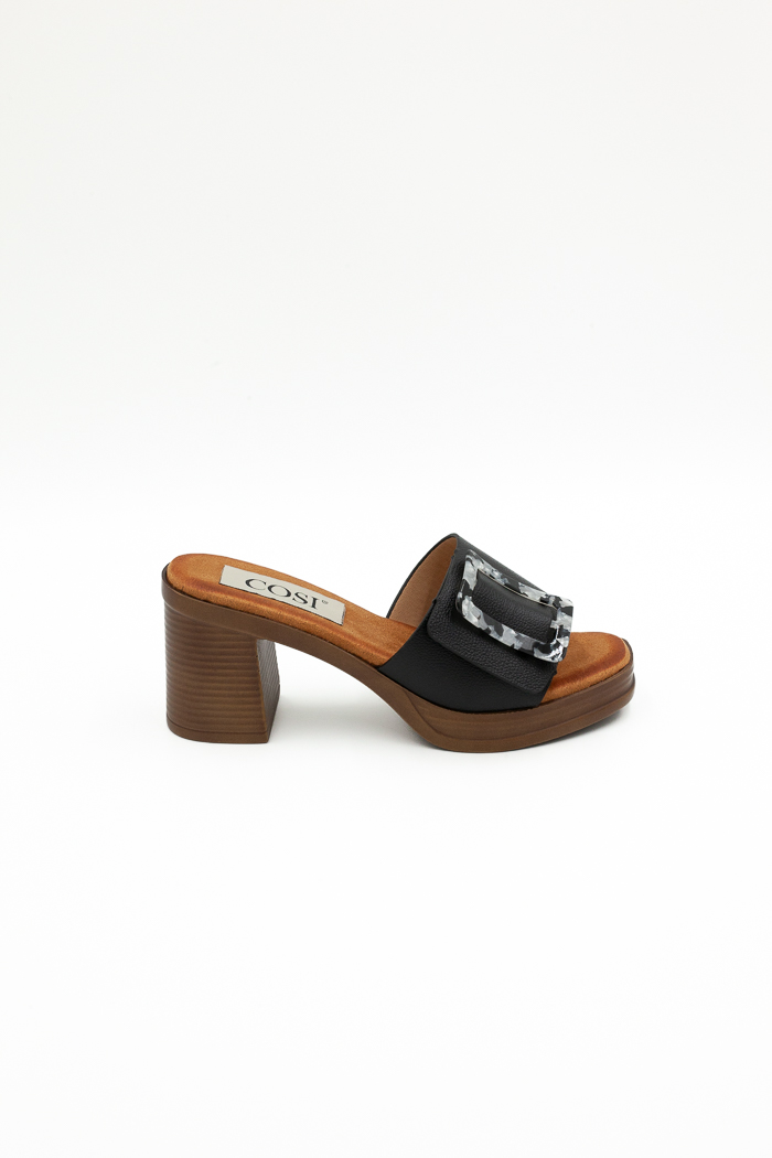 • Πέδιλα mules με φαρδιά φάσα και αγκράφα -Μαύρο