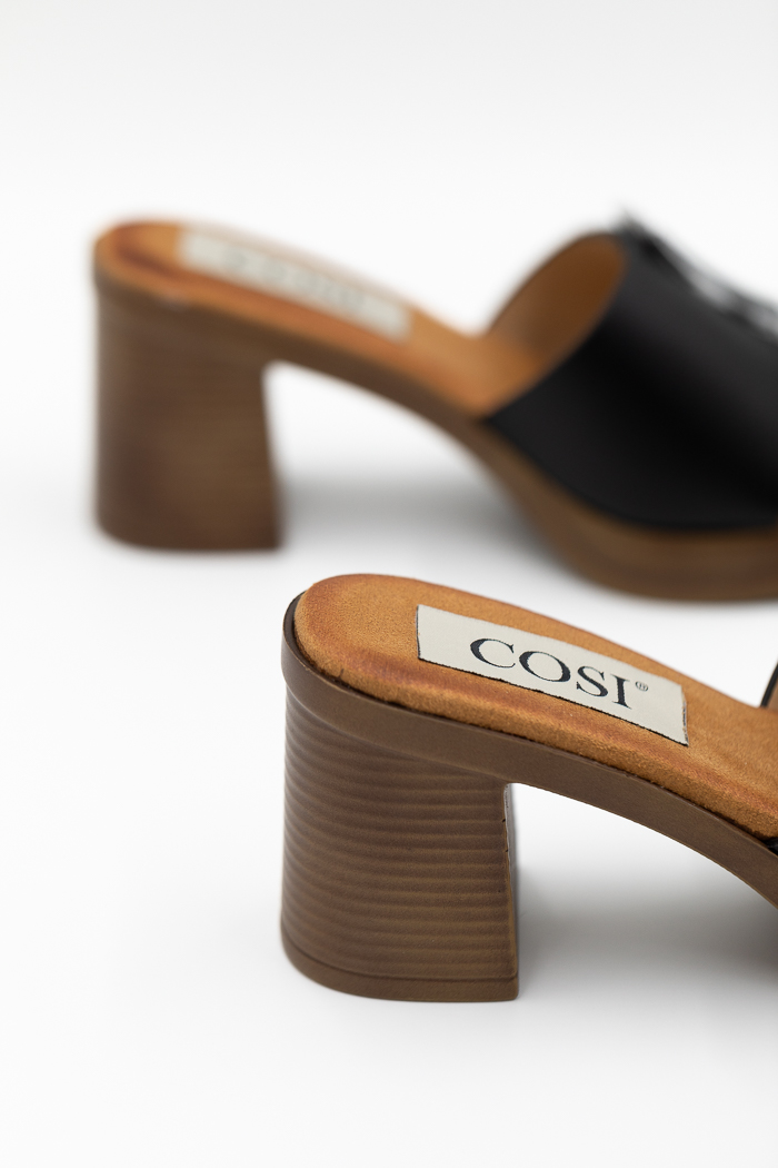 Πέδιλα mules με φαρδιά φάσα και αγκράφα -Μαύρο