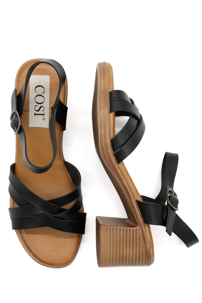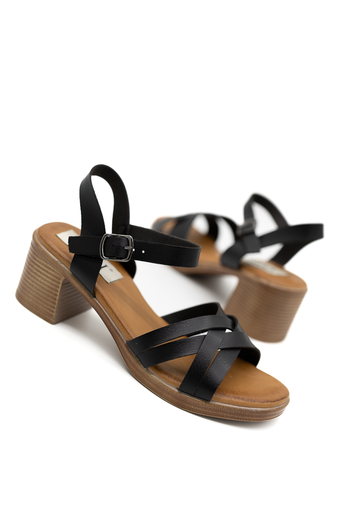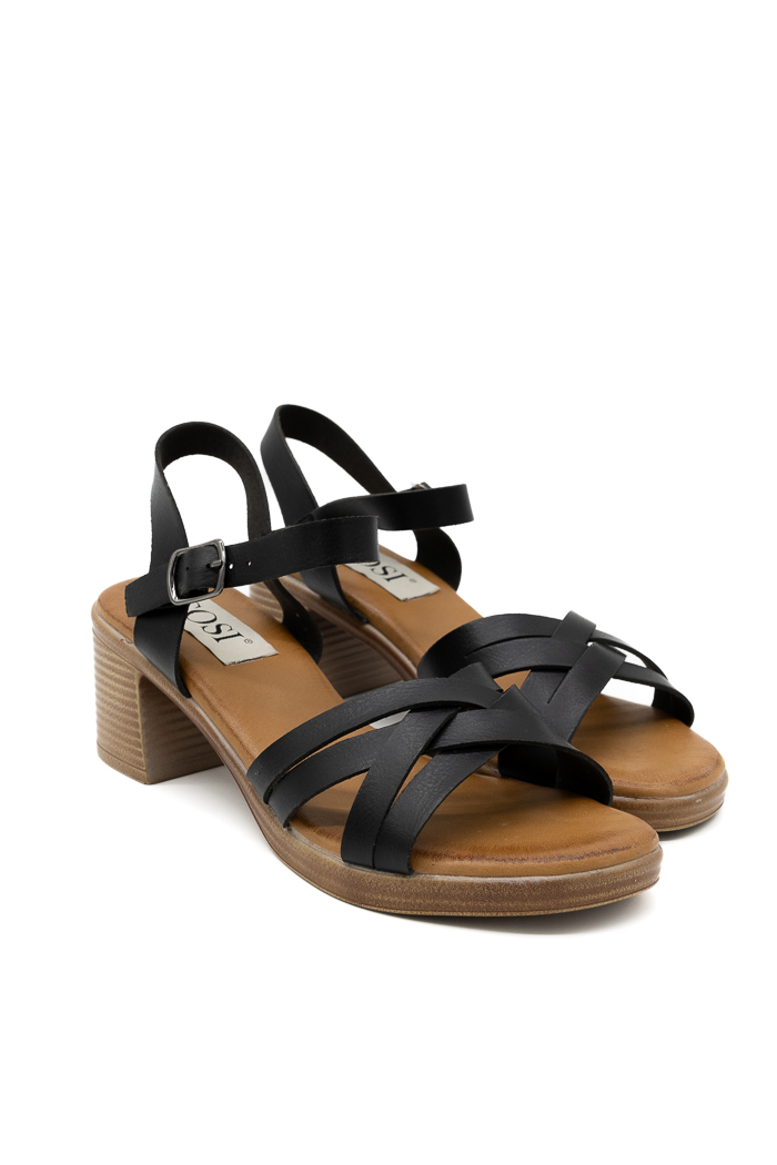 Πέδιλα με τετράγωνο τακούνι και λουράκια σε πλέξη στη φάσα 601-1 Μαύρο