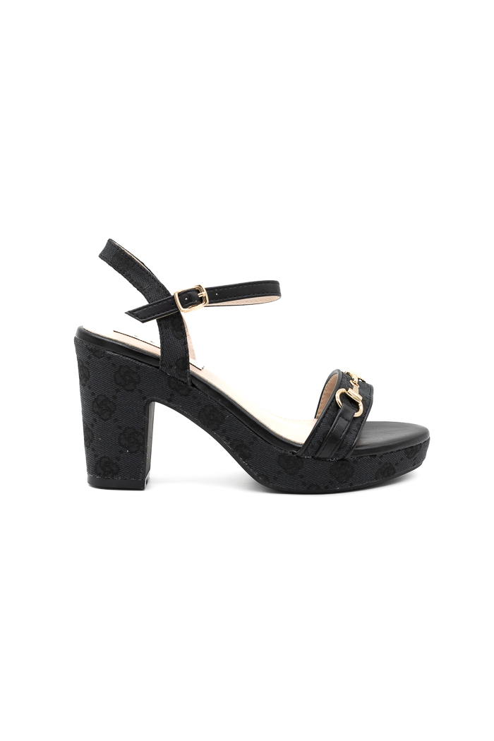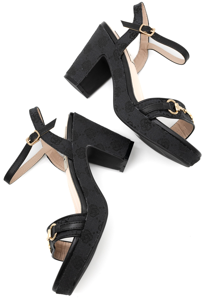 • Πέδιλα με τετράγωνο τακούνι και μεταλλική λεπτομέρεια στη φάσα κεντημένα με σχέδιο περιμετρικά 199-20 Μαύρο