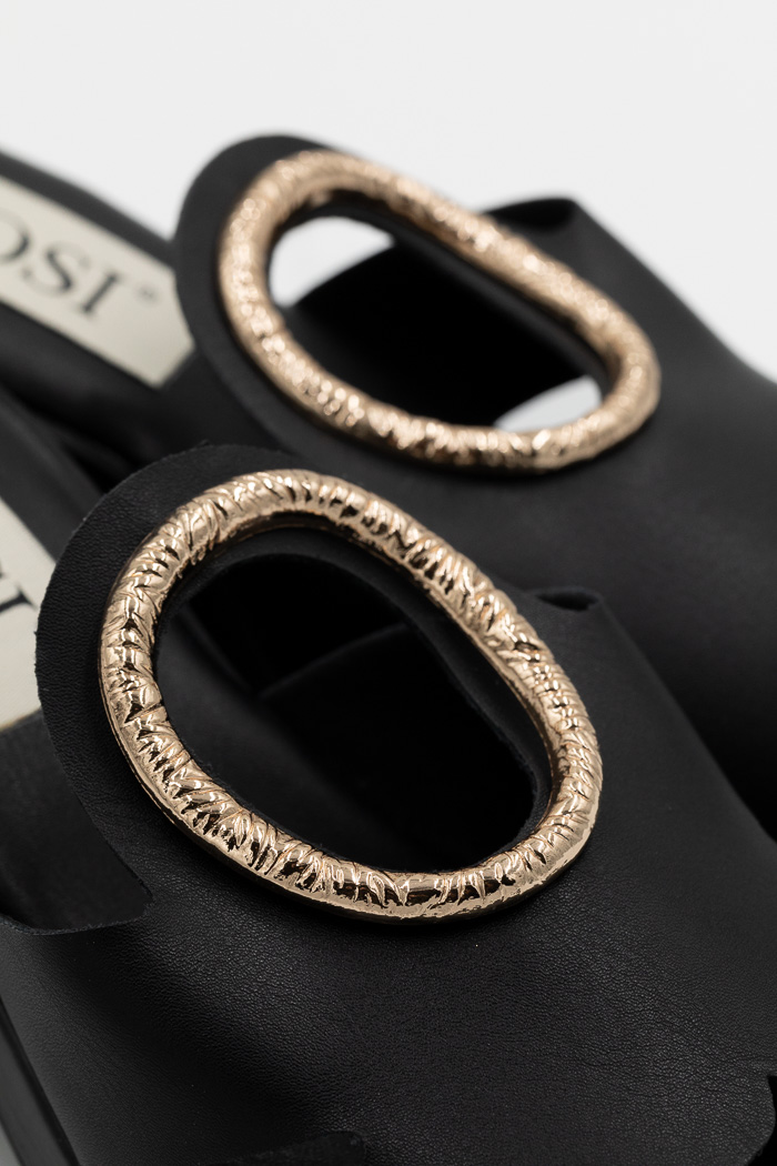 • Πέδιλα mules με χρυσή κυκλική αγκράφα-Μαύρο