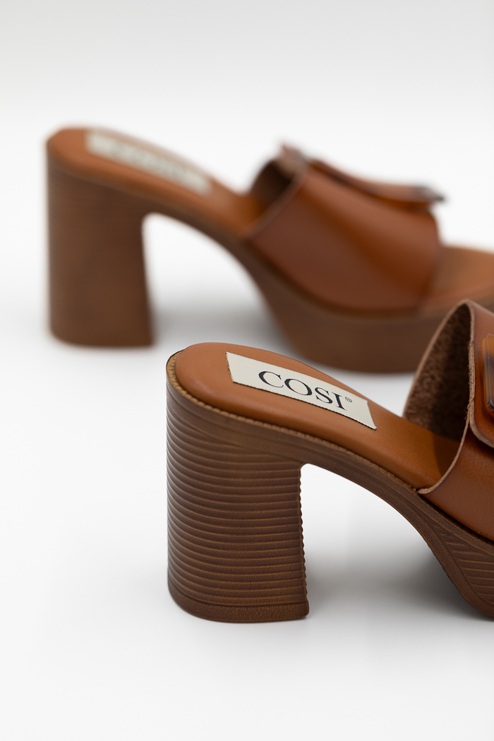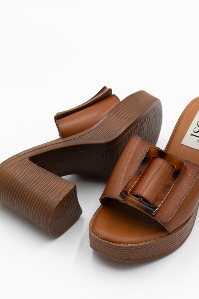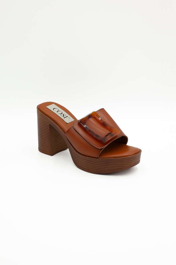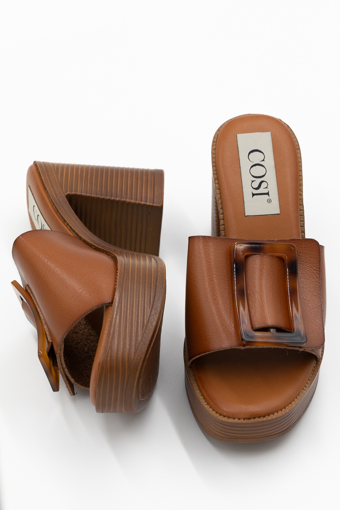 Πέδιλα mules με φαρδιά φάσα, αγκράφα & φιάπα-Ταμπά