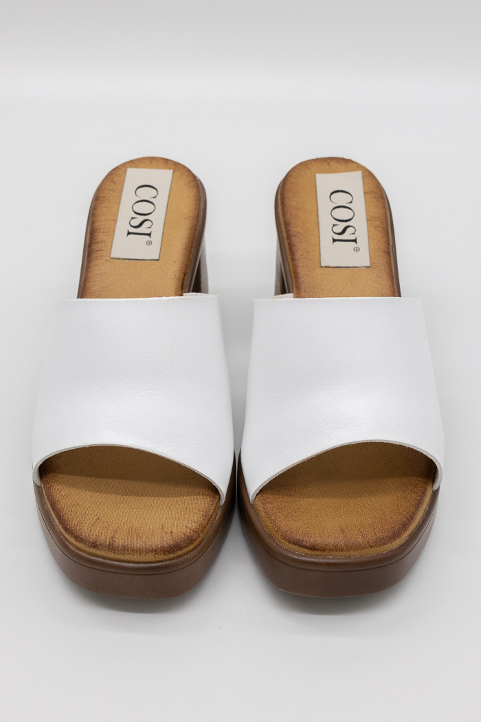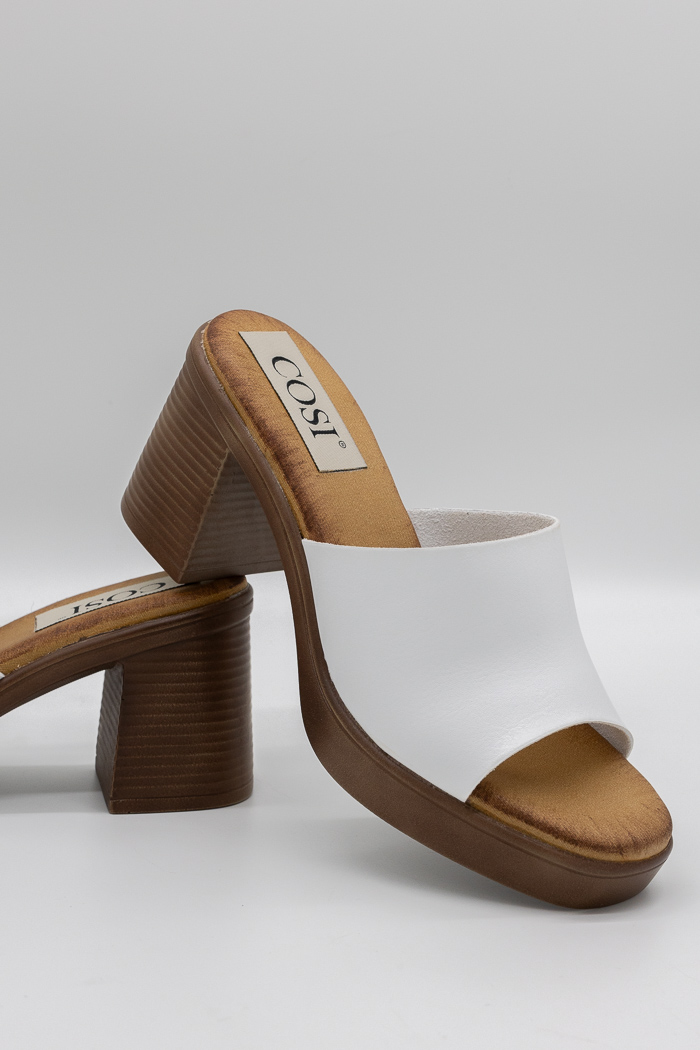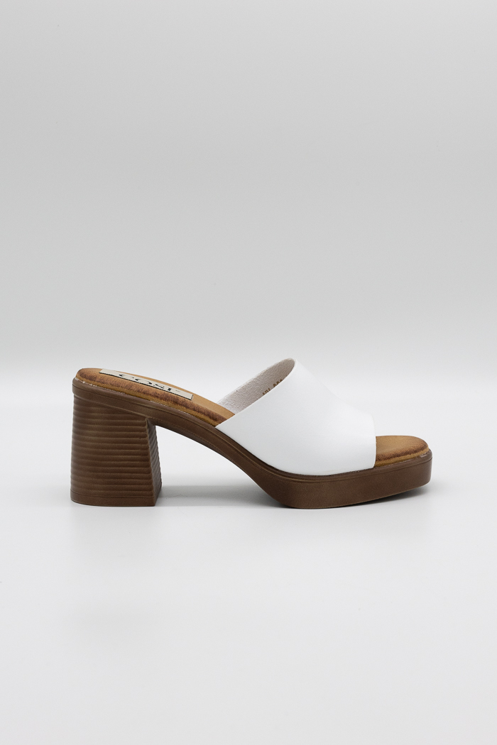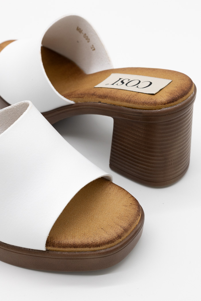 Πέδιλα mules με τετράγωνο τακούνι MM889-Λευκό
