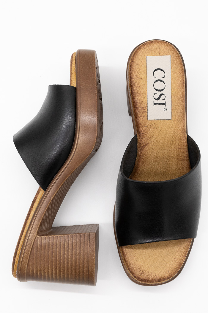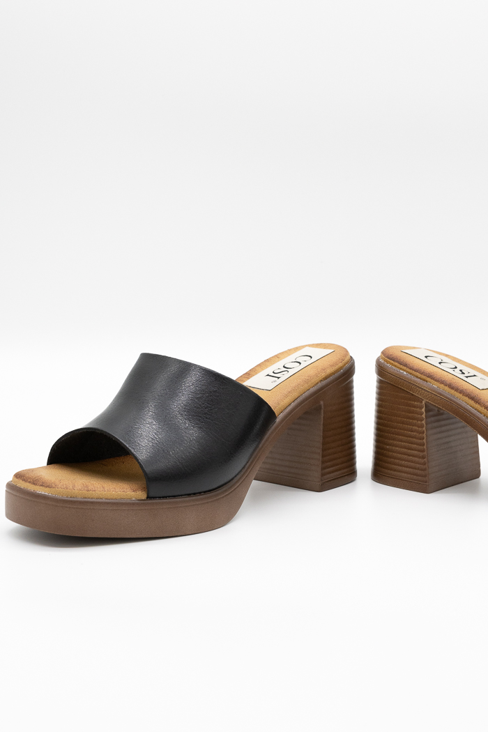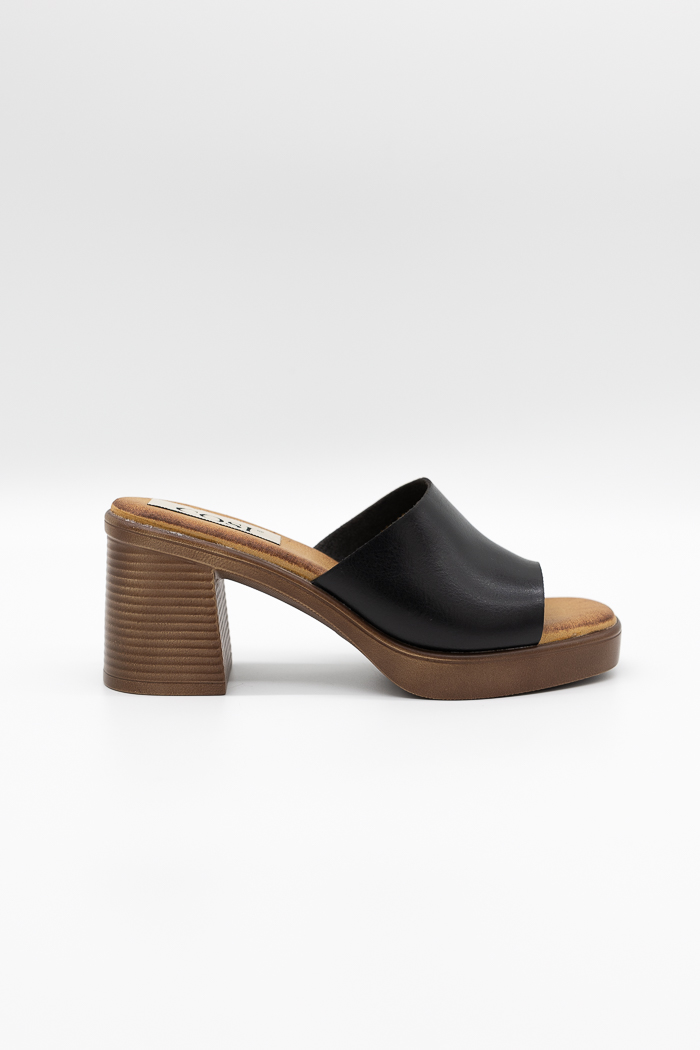 Πέδιλα mules με τετράγωνο τακούνι MM889-Μαύρο