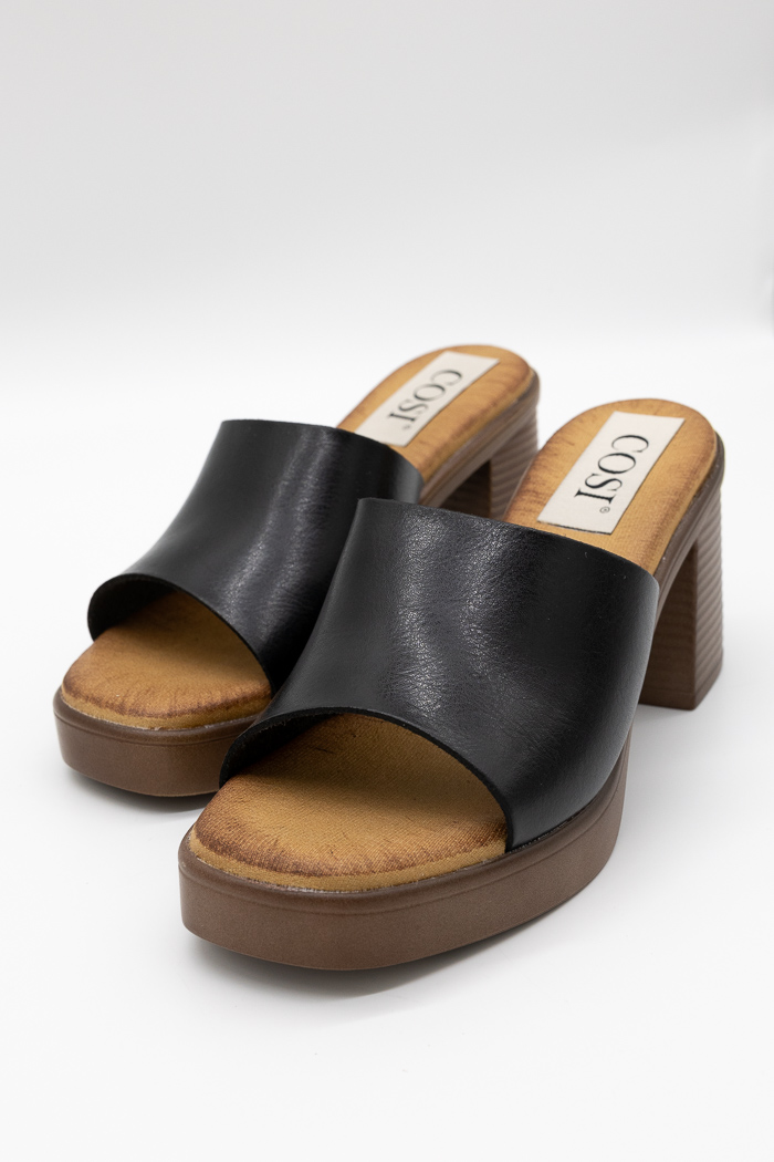 Γυναικεία πέδιλα mules με μαλακό πάτημα και σταθερό τετράγωνο τακούνι. Ελαφριά κατασκευή που προσφέρει άνεση και κομψότητα.