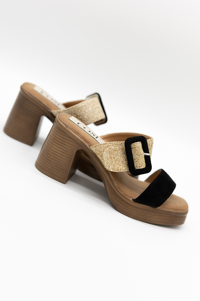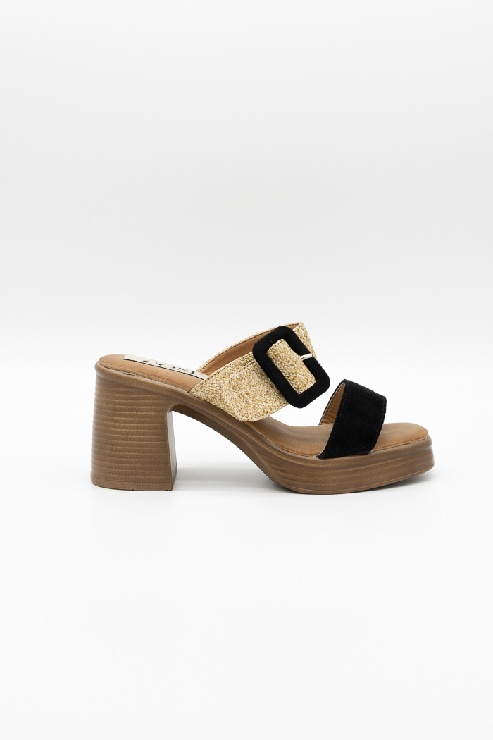 Πέδιλα mules (super soft) με φάσα τύπου ψάθα και suede, διακοσμητική αγκράφα και μαλακό πάτο για στυλ και άνεση όλη μέρα.